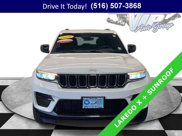4WD confidence, a smooth 8-speed automatic, and the proven 3.6L V6 make this 2025 Jeep Grand Cherokee 4D Sport Utility feel ready for every season in the Northeast while staying calm in daily traffic. Finished in Bright White Clearcoat with Black cloth seating, it blends clean style with comfort you appreciate on every commute or weekend getaway. Normal duty suspension and four wheel independent suspension deliver a ride that is composed on rough roads and stable at highway speeds, while the power sunroof brightens the cabin on clear days. Thoughtful touches like a power driver seat, split folding rear seat, front center armrest with storage, and generous headroom keep passengers relaxed and your routine organized.Uconnect 5 with an 8.4 inch multimedia display centers your drive with clear menus and quick responses, pairing with AM/FM radio with SiriusXM, a compass, trip computer, and radio data system. ParkView Rear Back-Up Camera helps with tight parking, and steering wheel media controls let you adjust audio without taking your hands off the wheel. Dual-zone automatic temperature control keeps everyone comfortable, and fully automatic headlights with delay-off lighting provide confident illumination. For foul weather, heated door mirrors, a rear window defroster, and a rear wiper enhance visibility. Safety is supported by multiple airbags including knee airbags, Electronic Stability Control, traction control, ABS with 4-wheel disc brakes, brake assist, anti-whiplash front head restraints, and an emergency communication system. Remote keyless entry, a security system with panic alarm, illuminated entry, and power windows and power door mirrors streamline every start. Speed-sensitive wipers, variably intermittent wipers, and alloy wheels with fully painted aluminum finish add practicality and polish, and the MOPAR paint protection film plus front and rear splash guards help preserve that Bright White finish & more.This example shows 14,712 miles, reflecting regular use for its model year and ready for many more miles of confident driving.VIP+ ProgramEnjoy real value every day with our VIP+ Program. You get Unlimited Oil & Filter changes for 1 year, then included with every factory maintenance thereafter. Take advantage of Complimentary NYS Inspections, Complimentary Loaner Cars, and Complimentary 24/7 Rescue & Towing. These benefits are For Life and Transferable, adding peace of mind for you and future owners.More About UsEvery vehicle is hand selected for quality and long-term reliability, then professionally reconditioned prior to sale so you can purchase with confidence. Our certified vehicles meet strict standards, including brake life no less than 50 percent, for added assurance. Count on trusted preparation and clear communication from a proud member of the VIP Auto Group serving the community since 1957. We Will Satisfy You!If you are looking for a used car on Long Island that handles year-round commuting and weekend escapes with equal ease, this Grand Cherokee brings the traction, comfort, and safety features drivers trust. Whether you are cross-shopping an SUV or even a used truck in New York, the combination of 4WD traction, ParkView Rear Back-Up Camera, dual-zone climate control, and multiple airbags including knee airbags builds confidence in bad weather and busy traffic. The durable Black cloth interior, MOPAR protection accessories, and fully painted aluminum wheels speak to long-term value, while the 3.6L V6 and 8-speed automatic make stop-and-go driving smooth and highway merging straightforward.Long Island and New York shoppers who want an affordable used car with year-round capability and everyday usability will find this 2025 Jeep Grand Cherokee checks the right boxes. Call now, schedule a test drive, or learn more at WestburyJeep.com to see up-to-date inventory and current pricing. This overview is provided as a general guide to the vehicle?s equipment and features and may vary by vehicle.