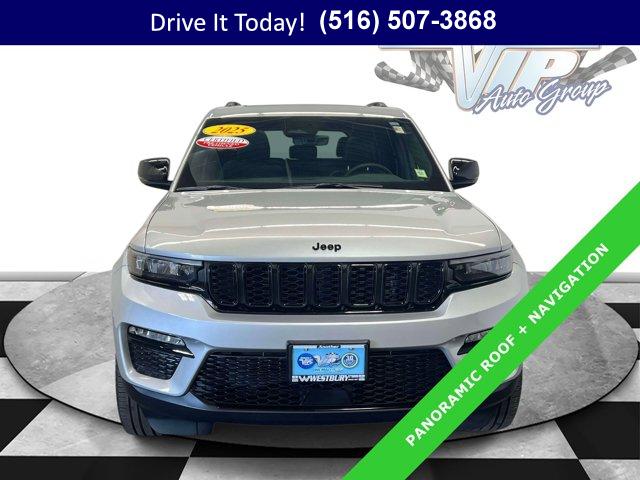 Confident 4WD traction and a smooth 3.6L V6 set this 2025 Jeep Grand Cherokee 4D Sport Utility up for everyday comfort and year-round composure. Finished in Silver Zynith with Global Black Capri leatherette seating, it blends refined design with the practicality families and commuters appreciate. The cabin feels calm and quiet thanks to the Active Noise Control System, while the Normal Duty Suspension and four wheel independent suspension help smooth broken pavement and winter-rutted roads. It is an excellent fit for Northeast weather and weekend escapes around New York, with the poise and space you want for school runs, errands, and road trips.The Black Appearance Package adds gloss black exterior accents and bold alloy wheels for a clean, modern stance. Open the Dual-Pane Panoramic Sunroof to let in sky and light on crisp mornings or cool evenings. Power driver and passenger seats, a memory driver seat, and dual-zone automatic climate control help you dial in comfort quickly. Speed-sensitive wipers, auto high-beam headlights, and fully automatic headlights reduce day-to-day hassle when the weather turns or the sun goes down.Stay connected and in control with the Uconnect 5 Nav multimedia display on a vivid 10.1 inch screen. Navigation helps you find the fastest route, while SiriusXM with 360L expands your entertainment choices. Steering wheel media controls keep your hands on the wheel and your focus ahead. A heated steering wheel, heated front seats, and heated rear seats take the edge off cold mornings. The power rear gate makes loading groceries and gear easier, and the ParkView Rear Back-Up Camera simplifies tight parking. Safety is supported by multiple airbags including knee airbags, Electronic Stability Control, 4-wheel disc brakes with ABS, brake assist, traction control, an emergency communication system, auto high-beam headlights, front fog lights, a rear window defroster, and more.This Grand Cherokee shows 9,846 miles. Quick Order Package 22E brings thoughtful equipment for daily use, while the cabin?s Global Black Capri leatherette holds up well to kids, pets, and cargo without sacrificing style.VIP+ ProgramEvery purchase includes VIP+ Program benefits that add real value from day one. Enjoy Unlimited Oil and Filter changes for 1 year, then included with every factory maintenance thereafter, plus Complimentary NYS Inspections to keep you current. Take advantage of Complimentary Loaner Cars when your vehicle is in for service and Complimentary 24/7 Rescue and Towing for added peace of mind. All VIP+ benefits are For Life and Transferable, helping protect you now and for the long haul.More About UsOur vehicles are hand selected for quality and long-term reliability, and reconditioning is completed before sale so you can purchase with confidence. Certified vehicles in our inventory meet strict standards, including brake life no less than 50 percent, to help ensure safety and value. As a proud member of the VIP Auto Group serving the community since 1957, we stand behind every sale with trust, preparation, and peace of mind. We Will Satisfy You!If you?re looking for a used car on Long Island that handles winter with ease, the Grand Cherokee?s 4WD, heated touchpoints, and calm ride deliver commuter-friendly comfort and confidence. This SUV?s strong feature set and durable materials support safety, reliability, and long-term value for families and drivers who want an affordable used car in NY without compromise.NY shoppers are invited to call now, schedule a test drive, or learn more at WestburyJeep.com, where you can explore up-to-date inventory and current pricing. This description and feature listing are provided as a general overview and may vary by vehicle. Please verify equipment and details with our team.