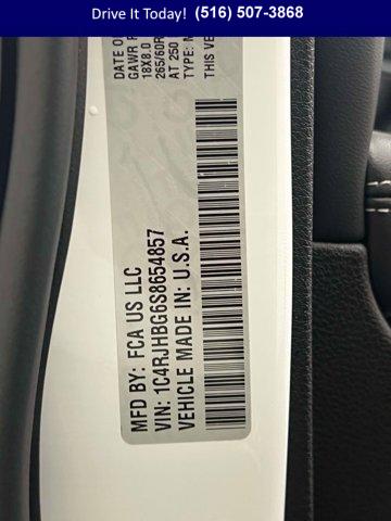 • LUXURY TECH GROUP II -inc: Power Tilt/Telescope Steering Column Integrated Off-Road Camera Surround View Camera System Rain Sensitive Windshield Wipers ParkSense Front/Rear Park Assist w/Stop Front/Rear Doors & Liftgate w/Passive Entry Wireless Charging Pad Rear Back-Up Camera Washer Ventilated Front Seats Auto Dim Exterior Driver Mirror 2nd-Row Manual Window Shades Intersection Collision Assist System Rearview Autodim Digital Display Mirror Memory Steering Column, BRIGHT WHITE CLEARCOAT, ENGINE: 3.6L V6 24V VVT UPG I W/ESS (STD), MOPAR FINISHING PACKAGE -inc: MOPAR Rear Splash Guards w/Jeep Logo MOPAR Paint Protection Film MOPAR Front Splash Guards, GLOBAL BLACK CAPRI LEATHERETTE W/AXIS II SEATS, MONOTONE PAINT, TRANSMISSION: 8-SPEED AUTOMATIC (850RE) (STD), TIRES: 265/60R18 BSW A/S LRR (STD), MODEL YEAR TRACKING, WHEELS: 18 X 8 POLISHED/PAINTED ALUMINUM (STD), QUICK ORDER PACKAGE 22E -inc: Engine: 3.6L V6 24V VVT UPG I w/ESS Transmission: 8-Speed Automatic (850RE), DUAL-PANE PANORAMIC SUNROOF, FRONT LICENSE PLATE BRACKET