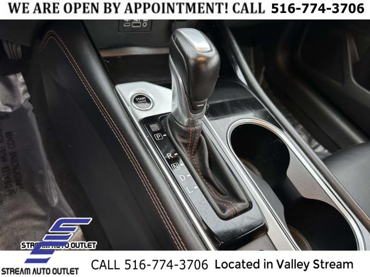 Wheels: 19" Sport Machined Alloy, Unique Sport Seats, Sport Seat Trim, Radio: AM/FM Audio System, Body-Colored Splash Guards, USB Charging Cable Set - Nissan, SR Floor Mats/Trunk Mat/Hideaway Nets, Trunk Organizer Tray, 4-Wheel Disc Brakes, NissanConnect featuring Apple CarPlay and Android Auto, Auto High-beam Headlights, AM/FM radio: SiriusXM, Speed-Sensitive Wipers, Blind Spot Warning, Front beverage holders, Variably intermittent wipers, Trip computer, Traction control, Tilt steering wheel, Telescoping steering wheel, Steering wheel mounted audio controls, Split folding rear seat, Speed-sensing steering, Speed control, Security system, Remote keyless entry, Rear window defroster, Rear side impact airbag, Rear seat center armrest, Rear reading lights, Rear anti-roll bar, Radio data system, Power windows, Power steering, Power driver seat, Power door mirrors, Passenger vanity mirror, Passenger door bin, Panic alarm, Overhead console, Overhead airbag, Outside temperature display, Occupant sensing airbag, Low tire pressure warning, Knee airbag, Illuminated entry, Fully automatic headlights, Front reading lights, Front anti-roll bar, Four wheel independent suspension, Dual front side impact airbags, Dual front impact airbags, Driver vanity mirror, Driver door bin, Delay-off headlights, Bumpers: body-color, Brake assist, Alloy wheels, ABS brakes, Tachometer, Rear Parking Sensors, Leather Shift Knob, Front Center Armrest, Front Bucket Seats, Electronic Stability Control, Air Conditioning, 6 Speakers