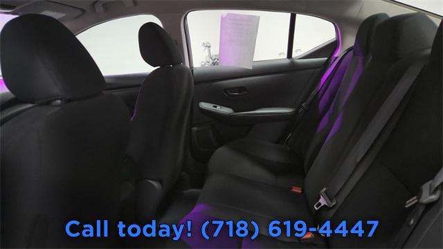 4 Speakers, AM/FM radio, Radio data system, Radio: AM/FM w/RDS/MP3/Aux-In, Air Conditioning, Rear window defroster, Power steering, Power windows, Remote keyless entry, Steering wheel mounted audio controls, Four wheel independent suspension, Speed-sensing steering, Traction control, ABS brakes, Dual front impact airbags, Dual front side impact airbags, Front anti-roll bar, Knee airbag, Low tire pressure warning, Occupant sensing airbag, Overhead airbag, Rear anti-roll bar, Rear side impact airbag, Blind Spot Warning, Brake assist, Electronic Stability Control, Rear Parking Sensors, Auto High-beam Headlights, Delay-off headlights, Fully automatic headlights, Panic alarm, Speed control, Body Colored Splash Guards (4-Piece), Bumpers: body-color, Power door mirrors, Carpeted Floor Mats w/Trunk Mat, Cloth Seat Trim, Driver door bin, Driver vanity mirror, Front reading lights, Illuminated entry, NissanConnect featuring Apple CarPlay and Android Auto, Outside temperature display, Overhead console, Passenger vanity mirror, Tachometer, Telescoping steering wheel, Tilt steering wheel, Trip computer, Front Bucket Seats, Front Center Armrest, Split folding rear seat, Passenger door bin, 16" Steel Wheels w/Full Wheel Covers, Variably intermittent wipers