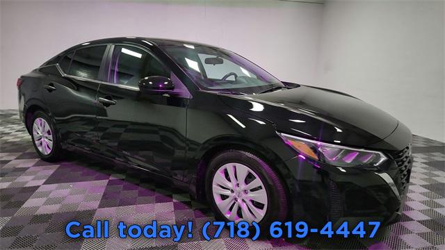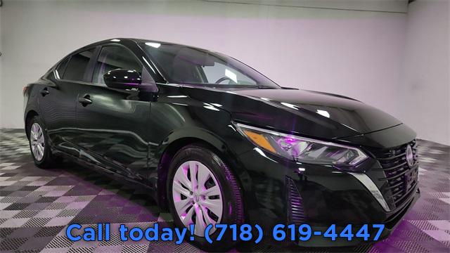 2025 Nissan Sentra S CVT with Xtronic, Charcoal w/Cloth Seat Trim, Auto High-beam Headlights, Blind Spot Warning, Fully automatic headlights, Radio: AM/FM w/RDS/MP3/Aux-In, Rear Parking Sensors, Remote keyless entry, Steering wheel mounted audio controls.