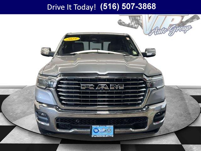 • This 2025 Ram 1500 4D Crew Cab arrives as a Certified Pre-Owned Vehicle, pairing confident 4WD with a smooth 8-speed automatic and a responsive 3.0L I6. Finished in Billet Silver Metallic Clearcoat with a Black leather interior, it blends upscale design with everyday comfort. The crew cab layout delivers easy ingress, generous rear legroom, and smart storage, while finely tuned suspension and sound insulation make highway miles calm and city streets composed.The cabin is built to keep you relaxed year round. Leather seating is complemented by heated front and rear seats for cold mornings, ventilated front seats for humid summers, and a heated steering wheel that takes the chill out of winter starts. Dual-zone automatic temperature control lets passengers set their own comfort. Memory settings for the driver seat and mirrors, plus power 8-way front passenger adjustment with power lumbar for both front seats, add tailored support. Chrome, auto power-folding heated mirrors with signals and courtesy lamps boost visibility at the curb, and rain-sensing wipers with auto high-beam headlights simplify wet-night drives. Outside, 20-inch premium paint and polish wheels and bright chrome accents add a confident stance.Stay connected through a 12.0-inch Uconnect 5 Nav multimedia display with built-in GPS navigation, Apple CarPlay and Android Auto, HD Radio, SiriusXM with 360L, Connected Travel and Traffic Services, 4G LTE Wi-Fi Hot Spot, and Integrated Voice Command with Bluetooth. Sound is clear through a 10-speaker setup, and steering wheel media controls keep your focus on the road. ParkView Rear Back-Up Camera, Electronic Stability Control, Traction Control, Adaptive Cruise Control, remote tailgate release, auto-dimming interior and exterior driver mirrors, and a security system round out thoughtful confidence for your daily routine and weekend escapes & more.Showing 32,981 miles, this Ram 1500 has been road-ready and carefully equipped for workdays and family duty alike. If you?re searching for a certified Ram 1500 or a used truck in New York that brings premium comfort and everyday usability, this one stands tall.VIP+ ProgramEvery purchase includes our VIP+ Program benefits. Enjoy Unlimited Oil and Filter changes for 1 year, then included with every factory maintenance thereafter, plus Complimentary NYS Inspections, Complimentary Loaner Cars, and Complimentary 24/7 Rescue and Towing. All benefits are For Life and Transferable, designed to add long-term value and peace of mind.Purchase With ConfidenceAs a Certified Pre-Owned Vehicle (CPOV), this Ram 1500 includes a 7-Year / 100,000-Mile Powertrain Limited Warranty, a 125-Point Inspection, 24-Hour Roadside Assistance, a Rental Car Allowance, and a CARFAX Vehicle History Report. Shop with confidence knowing key components and background are verified to Ram standards.More About UsOur vehicles are hand selected for quality and long-term reliability, then reconditioned before sale so you can drive away with confidence. Certified units meet strict standards, including brake life no less than 50 percent, to help ensure safe performance from day one. We emphasize trust, preparation, and peace of mind. As a proud member of the VIP Auto Group serving the community since 1957, we stand by our promise: We Will Satisfy You!Whether your commute includes parkways or coastal routes, this 4WD Ram 1500 brings commuter-friendly comfort, winter confidence, and solid long-term value. If you?re looking for an affordable used car or truck on Long Island with premium amenities and modern tech, this pickup is a smart choice for year-round driving in New York weather.Call now to learn more, schedule a test drive, or explore financing options. Visit WestburyJeep.com to view up-to-date inventory and current pricing. This description and feature list serve as a general overview and may vary by vehicle. Please verify all equipment and specifications prior to purchase.