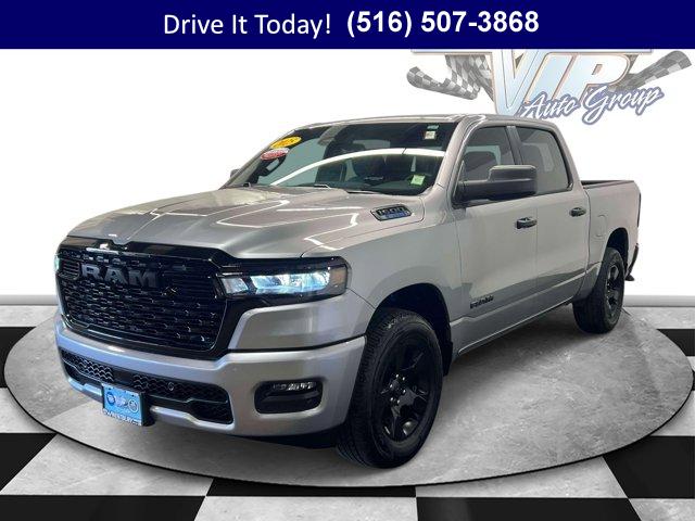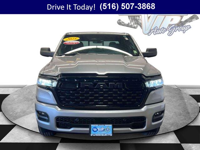 4WD confidence and low miles make this 2025 Ram 1500 4D Crew Cab a smart choice for year-round driving and work. Dressed in Billet Silver Metallic Clearcoat with a clean Black Cloth interior, it balances rugged capability with everyday comfort, delivering a quiet ride, secure traction, and roomy seating that handles commutes, job sites, and weekend chores with ease.Powered by a 3.6L V6 paired to an 8-speed automatic, this truck feels responsive in traffic and relaxed at highway speeds. The Anti-Spin Differential Rear Axle helps put power to the ground when roads get slick, while the 3.21 rear axle ratio supports efficient cruising. Crew Cab space makes daily life easier with a 40/20/40 front split bench, a rear 60/40 folding seat, and clever storage like 2nd-row in-floor bins and front center seat cushion storage. The Night Edition adds a bold look with black exterior accents, black RAM grille badge and surround, body color bumpers with step pads, and available 18-inch black painted aluminum wheels that complete the stance.The Bed Utility Group is ready for real work, adding a MOPAR spray-in bedliner, deployable bed step, adjustable cargo tie-down hooks, and pickup box lighting to simplify loading and securing gear. A rear power sliding window brings airflow to the cabin and quick access to the bed. Heated exterior mirrors with manual folding are practical in tight spots, and the rear step bumper makes bed access easier.Inside, the Uconnect 5 system with an 8.4-inch multimedia display keeps you connected with Apple CarPlay and Android Auto, plus SiriusXM for a wide range of entertainment. A 400W inverter helps power tools or charge devices at the job site, and 6 speakers deliver clear audio. Everyday convenience comes from remote keyless entry, power windows and mirrors, speed control, tilt and telescoping steering wheel, illuminated entry, overhead console, and an outside temperature display & more.Safety and driver confidence are built in with ParkView Rear Back-Up Camera for easy maneuvering, Auto High-Beam Headlights that adjust to conditions, bright front LED fog lamps, Electronic Stability Control, Traction Control, 4-wheel disc brakes, ABS, Brake Assist, independent front suspension, and tire pressure monitoring. Variably intermittent wipers keep visibility steady in changing weather.With just 10,377 miles, this Ram 1500 has low miles for its age, giving you more driving ahead with less wear than the market average for a 2025 model.VIP+ ProgramDrive with long-term value in mind. Our VIP+ Program includes Unlimited Oil and Filter Changes for 1 year, then those oil changes are included with every factory maintenance thereafter. You also get Complimentary NYS Inspections, Complimentary Loaner Cars, and Complimentary 24/7 Rescue and Towing. These benefits are for life and transferable, adding real peace of mind for you and the next owner.Purchase With ConfidenceThis Ram 1500 is a quality pre-owned truck backed by a transparent sales process. Our team is happy to review its condition, service history, and available protection options so you can choose the coverage that fits your needs.More About UsEvery vehicle we sell is hand selected for quality and long-term reliability, then reconditioned before sale so you can purchase with confidence. Our certified vehicles meet strict standards, including brake life no less than 50 percent, for added assurance. Count on trust, thorough preparation, and peace of mind from a proud member of the VIP Auto Group serving the community since 1957. We Will Satisfy You!This Ram delivers commuter-friendly comfort and winter confidence, from its 4WD traction to its Anti-Spin Differential Rear Axle and bright LED fog lamps that help in snow and coastal mist. Whether you haul equipment, navigate tight job sites, or want a capable family hauler, it offers safety, reliability, and long-term value tailored to Northeast roads and weather. If you're looking for a used truck in New York or shopping for an affordable used car, this pickup is ready to work and ready to ride.Shoppers across Long Island and New York can call now, schedule a test drive, or learn more at WestburyJeep.com. Explore up-to-date inventory and current pricing anytime. Please note, the features and vehicle description here provide a general overview and may vary by vehicle.