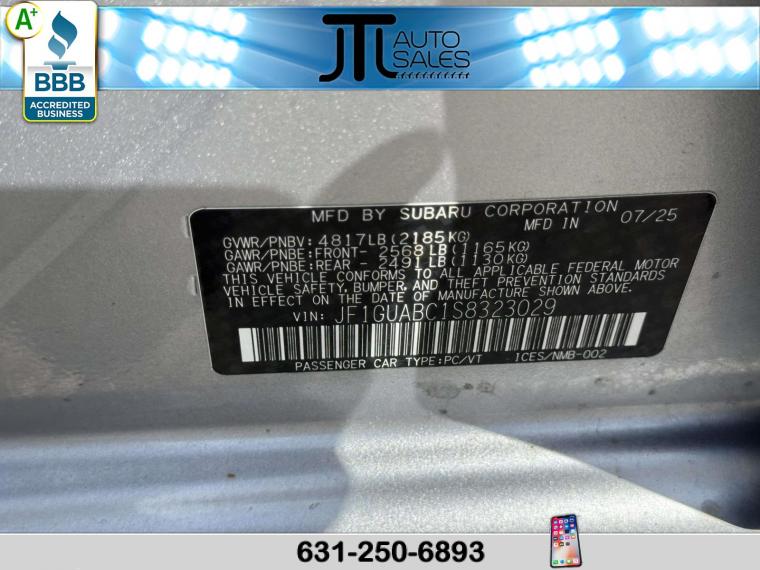 For more information on this 2025 Subaru Impreza, please call JTL Auto Sales at (631) 250-6893 or with the contact form on this page. This vehicle's vin number is JF1GUABC1S8323029 and is recorded as being in stock at JTL Auto Sales at 504 Middle Country Rd in Selden. See all cars from this dealership.
