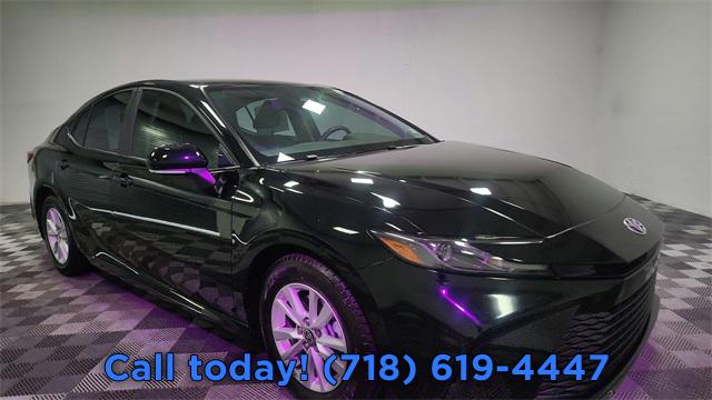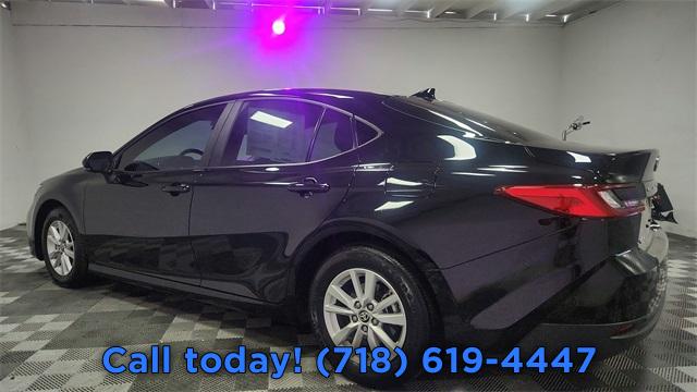 Recent Arrival! CARFAX One-Owner. Clean CARFAX. 2025 Toyota Camry LE 2.5L 4-Cylinder 16V DOHC, Black w/Fabric Seat Trim, AM/FM radio: SiriusXM, Auto High-beam Headlights, Automatic temperature control, Exterior Parking Camera Rear, Front dual zone A/C, Fully automatic headlights, Radio: Toyota Audio Multimedia w/8" Touchscreen, Remote keyless entry, Steering wheel mounted audio controls.