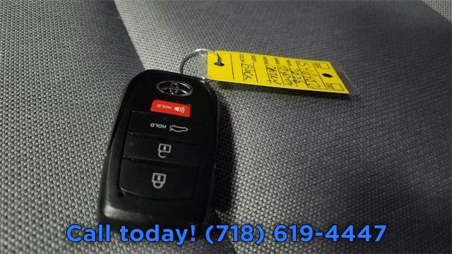 6 Speakers, AM/FM radio: SiriusXM, Radio data system, Radio: Toyota Audio Multimedia w/8" Touchscreen, Air Conditioning, Automatic temperature control, Front dual zone A/C, Rear window defroster, Power steering, Power windows, Remote keyless entry, Steering wheel mounted audio controls, Four wheel independent suspension, Speed-sensing steering, Traction control, 4-Wheel Disc Brakes, ABS brakes, Dual front impact airbags, Dual front side impact airbags, Emergency communication system: Safety Connect (up to 10-year trial subscription), Front anti-roll bar, Knee airbag, Low tire pressure warning, Occupant sensing airbag, Overhead airbag, Rear anti-roll bar, Rear side impact airbag, Brake assist, Electronic Stability Control, Exterior Parking Camera Rear, Auto High-beam Headlights, Delay-off headlights, Fully automatic headlights, Panic alarm, Security system, Speed control, Bumpers: body-color, Heated door mirrors, Power door mirrors, Turn signal indicator mirrors, Apple CarPlay/Android Auto, Driver door bin, Driver vanity mirror, Front reading lights, Illuminated entry, Outside temperature display, Overhead console, Passenger vanity mirror, Rear seat center armrest, Telescoping steering wheel, Tilt steering wheel, Trip computer, Fabric Seat Trim, Front Bucket Seats, Front Center Armrest, Split folding rear seat, Passenger door bin, Alloy wheels, Wheels: 16" Silver-Finished Alloy, Variably intermittent wipers
