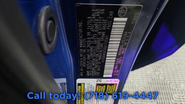 6 Speakers, AM/FM radio: SiriusXM, Radio data system, Radio: Toyota Audio Multimedia w/12.3" Touchscreen, Radio: Toyota Audio Multimedia w/8" Touchscreen, Air Conditioning, Automatic temperature control, Front dual zone A/C, Rear window defroster, Power driver seat, Power steering, Power windows, Remote keyless entry, Steering wheel mounted audio controls, Four wheel independent suspension, Speed-sensing steering, Traction control, 4-Wheel Disc Brakes, ABS brakes, Dual front impact airbags, Dual front side impact airbags, Emergency communication system: Safety Connect (up to 10-year trial subscription), Front anti-roll bar, Knee airbag, Low tire pressure warning, Occupant sensing airbag, Overhead airbag, Rear anti-roll bar, Rear side impact airbag, Brake assist, Electronic Stability Control, Exterior Parking Camera Rear, Auto High-beam Headlights, Delay-off headlights, Fully automatic headlights, Panic alarm, Security system, Speed control, Bumpers: body-color, Heated door mirrors, Power door mirrors, Spoiler, Turn signal indicator mirrors, Apple CarPlay/Android Auto, Driver door bin, Driver vanity mirror, Front reading lights, Illuminated entry, Leather Shift Knob, Leather steering wheel, Outside temperature display, Overhead console, Passenger vanity mirror, Rear reading lights, Rear seat center armrest, Telescoping steering wheel, Tilt steering wheel, Trip computer, Front Bucket Seats, Front Center Armrest, SofTex & Fabric Seat Trim, Split folding rear seat, Passenger door bin, Alloy wheels, Wheels: 18" Black-Finished Alloy, Variably intermittent wipers