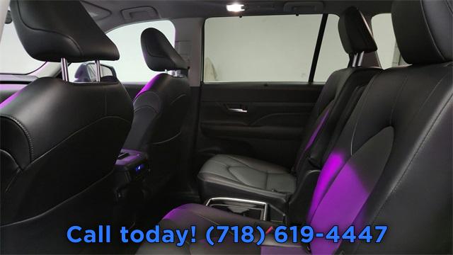 Navigation system: Drive Connect Cloud Navigation (1-year trial subscription), 6 Speakers, AM/FM radio: SiriusXM, Radio: 12.3" Toyota Audio Multimedia, Air Conditioning, Automatic temperature control, Front dual zone A/C, Rear air conditioning, Rear window defroster, Power driver seat, Power steering, Power windows, Remote keyless entry, Steering wheel mounted audio controls, Four wheel independent suspension, Speed-sensing steering, Traction control, 4-Wheel Disc Brakes, ABS brakes, Dual front impact airbags, Dual front side impact airbags, Emergency communication system: Safety Connect (up to 10-year trial subscription), Front anti-roll bar, Knee airbag, Low tire pressure warning, Occupant sensing airbag, Overhead airbag, Rear anti-roll bar, Power Liftgate, Brake assist, Electronic Stability Control, Exterior Parking Camera Rear, Auto High-beam Headlights, Delay-off headlights, Fully automatic headlights, Panic alarm, Security system, Speed control, Bumpers: body-color, Heated door mirrors, Power door mirrors, Spoiler, Turn signal indicator mirrors, Apple CarPlay/Android Auto, Auto-dimming Rear-View mirror, Driver door bin, Driver vanity mirror, Front reading lights, Garage door transmitter: HomeLink, Illuminated entry, Leather Shift Knob, Leather steering wheel, Outside temperature display, Overhead console, Passenger vanity mirror, Rear reading lights, Tachometer, Telescoping steering wheel, Tilt steering wheel, Trip computer, 3rd row seats: split-bench, Front Bucket Seats, Front Center Armrest, Heated Front Seats, Heated front seats, Power passenger seat, Reclining 3rd row seat, SofTex Seat Trim, Split folding rear seat, Passenger door bin, Alloy wheels, Wheels: 18" Multi-Spoke Silver Painted Alloy, Rear window wiper, Variably intermittent wipers