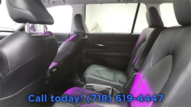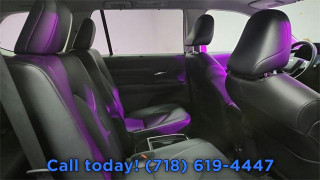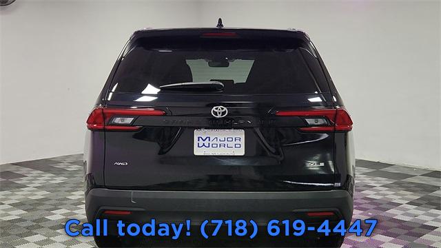 Navigation system: Drive Connect Cloud Navigation (1-year trial subscription), 6 Speakers, AM/FM radio: SiriusXM, Radio: 12.3" Toyota Multimedia Audio, Air Conditioning, Automatic temperature control, Front dual zone A/C, Rear air conditioning, Rear window defroster, Power driver seat, Power steering, Power windows, Remote keyless entry, Steering wheel mounted audio controls, Four wheel independent suspension, Speed-sensing steering, Traction control, 4-Wheel Disc Brakes, ABS brakes, Dual front impact airbags, Dual front side impact airbags, Emergency communication system: Safety Connect (up to 10-year trial subscription), Front anti-roll bar, Knee airbag, Low tire pressure warning, Occupant sensing airbag, Overhead airbag, Rear anti-roll bar, Power Liftgate, Brake assist, Electronic Stability Control, Exterior Parking Camera Rear, Auto High-beam Headlights, Delay-off headlights, Fully automatic headlights, Panic alarm, Security system, Speed control, Bumpers: body-color, Heated door mirrors, Power door mirrors, Spoiler, Turn signal indicator mirrors, Apple CarPlay/Android Auto, Auto-dimming Rear-View mirror, Driver door bin, Driver vanity mirror, Front reading lights, Garage door transmitter: HomeLink, Illuminated entry, Leather Shift Knob, Leather steering wheel, Outside temperature display, Overhead console, Passenger vanity mirror, Rear reading lights, Tachometer, Telescoping steering wheel, Tilt steering wheel, Trip computer, 3rd row seats: split-bench, Front Bucket Seats, Front Center Armrest, Heated Front Seats, Heated front seats, Power passenger seat, Reclining 3rd row seat, SofTex Seat Trim, Split folding rear seat, Passenger door bin, Alloy wheels, Wheels: 18" Multi-Spoke Silver Painted Alloy, Rear window wiper, Variably intermittent wipers