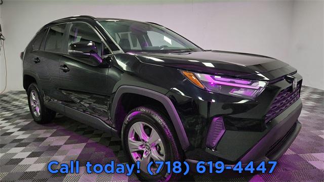 CARFAX One-Owner. Clean CARFAX. 2025 Toyota RAV4 XLE Black w/Fabric Seat Trim, Auto High-beam Headlights, Automatic temperature control, Exterior Parking Camera Rear, Front dual zone A/C, Fully automatic headlights, Radio: AM/FM/XM Audio System, Remote keyless entry, Steering wheel mounted audio controls.