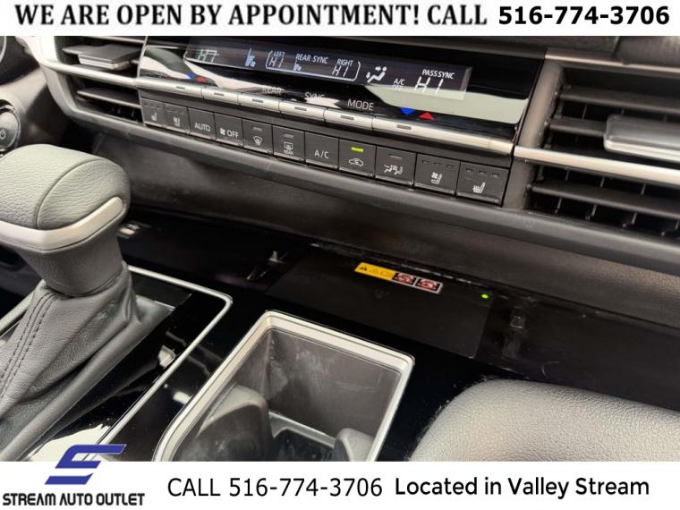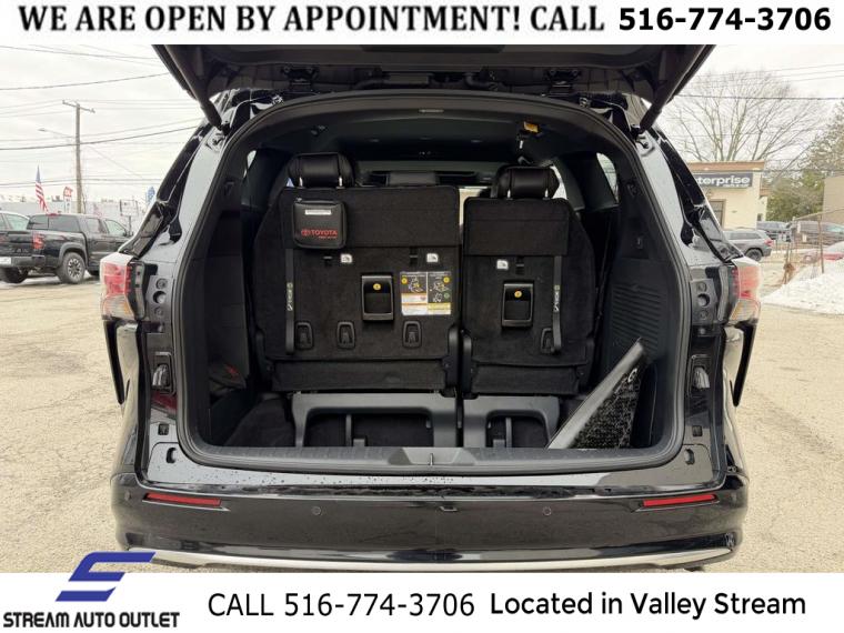 Navigation System, Platinum Package, 12 Speakers, AM/FM radio: SiriusXM, Radio data system, Radio: Toyota JBL Audio Multimedia System, Air Conditioning, Automatic temperature control, Front dual zone A/C, Rear air conditioning, Rear dual zone A/C, Rear window defroster, 1500 Watt Inverter Output, Heads-Up Display, Memory seat, Power driver seat, Power steering, Power windows, Remote keyless entry, Steering wheel memory, Steering wheel mounted audio controls, Four wheel independent suspension, Speed-sensing steering, Traction control, 4-Wheel Disc Brakes, ABS brakes, Dual front impact airbags, Dual front side impact airbags, Emergency communication system: Safety Connect (3-year trial), Front anti-roll bar, Knee airbag, Low tire pressure warning, Occupant sensing airbag, Overhead airbag, Rear anti-roll bar, Rear side impact airbag, Power moonroof, Power Liftgate, Brake assist, Electronic Stability Control, Lane Departure Warning System, Exterior Parking Camera Rear, Auto High-beam Headlights, Delay-off headlights, Front fog lights, Fully automatic headlights, Panic alarm, Speed control, Auto-dimming door mirrors, Bumpers: body-color, Heated door mirrors, Power door mirrors, Spoiler, Turn signal indicator mirrors, Apple CarPlay/Android Auto, Auto-dimming Rear-View mirror, Compass, Driver door bin, Driver vanity mirror, Front reading lights, Garage door transmitter: HomeLink, Heated steering wheel, Illuminated entry, Leather Shift Knob, Leather steering wheel, Outside temperature display, Overhead console, Passenger seat mounted armrest, Passenger vanity mirror, Rear reading lights, Tachometer, Telescoping steering wheel, Tilt steering wheel, Trip computer, 3rd row seats: split-bench, Driver's Seat Mounted Armrest, Front Bucket Seats, Front Heated Bucket Seats, Heated front seats, Heated rear seats, Leather Seat Trim, Power passenger seat, Reclining 3rd row seat, Split folding rear seat, Ventilated front seats, Passenger door bin, Alloy wheels, Wheels: 18" Two-Tone Alloy, Rain sensing wipers, Rear window wiper, Variably intermittent wipers, TBD Axle Ratio, * NYS INSPECTION INCLUDED *, * FULL INTERIOR / EXTERIOR DETAIL *, * BACK UP CAMERA *, * NAVIGATION SYSTEM *, * BLUETOOTH *, * SUNROOF / MOONROOF*, * LEATHER SEATS *, * LIMITED NYS LEMON LAW WARRANTY INCLUDED *, *FRESH OIL CHANGE *, * 150 MULTI POINT INSPECTION *, APPLE CAR PLAY/ANDROID AUTO