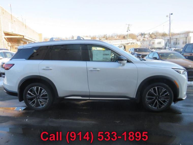 This 2026 INFINITI QX60 4dr LUXE AWD features a 2.0L 4 CYLINDER 4cyl Gasoline engine. It is equipped with a 9 Speed Automatic transmission. The vehicle is Not Specified with a Not Specified interior. It is offered As-Is, extended warranty is available. - Climate Control, Dual Zone Climate Control, Cruise Control, Tinted Windows, Power Steering, Power Mirrors, Leather Steering Wheel, Power Drivers Seat, Power Passenger Seat, Rear Air Conditioning, Clock, Tachometer, Homelink System, Telescoping Steering Wheel, Steering Wheel Radio Controls, Sunroof, Moonroof, Driver Airbag, Passenger Airbag, Security System, Rear Defogger, Intermittent Wipers, AM/FM, Premium Sound System, 3rd Row Seating, Air Conditioned Seats, Aux. Audio Input, Carpeted Floor Mats, Center Arm Rest, Child Proof Door Locks, Daytime Running Lights, Front AC Seats, Front Heated Seats, Heated Mirrors, Overhead Console, Parking Sensors, Power Lift Gate, Rear Heated Seats , Rear Spoiler, Rear Spoiler, Rear Wipers, Rear-Side Airbags, Remote Trunk Lid, Reverse Camera, Roll Stability Control, Side Curtain Airbags, Sliding Rear Window, Tire Pressure Monitor, Vanity Mirrors - Contact Michael Maratto at (914) 533-1895 for more information. -