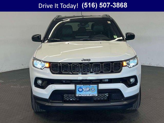 4WD confidence meets everyday comfort in this 2026 Jeep Compass 4D Sport Utility, powered by a smooth-shifting 8-speed automatic paired with a responsive 2.0L I4 DOHC. The Bright White Clearcoat exterior is matched with a Black artificial leather interior for a clean, refined look that suits workdays and weekends. Limited Altitude styling cues add Neutral Gray exterior accents, gloss black surrounds, and piano black interior touches, while aluminum wheels complete the upscale stance. Inside, dual-zone automatic temperature control, a power driver seat, and a quiet cabin make daily driving easy, and the split-folding rear seat adds cargo flexibility for errands, gear, and getaways.Technology that simplifies every trip starts with a 10.1 inch multimedia display running Uconnect 5 and a premium audio system for clear, intuitive control of AM/FM and SiriusXM. Stay connected with a 4G LTE Wi-Fi hot spot and feel secure with SiriusXM Guardian emergency communication supported by a Global Telematics Box Module. Convenience features include a power rear gate, remote keyless entry, an auto-dimming rear-view mirror, and steering wheel media controls. For year-round comfort, enjoy heated front seats and a heated steering wheel, plus heated exterior mirrors with integrated turn signals. Intelligent lighting and visibility come from auto high-beam headlights, rain-sensing wipers, front fog lights, and the ParkView Rear Back-Up Camera. Safety is supported by electronic stability control, traction control, ABS with 4-wheel disc brakes, and multiple airbags including knee airbags. Four-wheel independent suspension and a 3.73 final drive ratio deliver balanced handling and confident acceleration, while rear defroster and wiper add foul-weather practicality. Thoughtful touches like front and rear armrests, power windows and mirrors, and a security system round out a well-equipped cabin & more.This Compass currently shows 2,505 miles. You get the poise and design of the latest model year along with the reassurance of modern tech and thoughtful features throughout.VIP+ ProgramEvery used vehicle here includes our VIP+ Program benefits. Enjoy Unlimited Oil and Filter changes for 1 year, then included with every factory maintenance thereafter. Take advantage of Complimentary NYS Inspections, Complimentary Loaner Cars, and Complimentary 24/7 Rescue and Towing. These benefits are For Life and Transferable, adding long-term value and peace of mind to your purchase.More About UsOur vehicles are hand selected for quality and long-term reliability, then professionally reconditioned before sale so you can purchase with confidence. When a vehicle is certified, it meets strict standards that include brake life of no less than 50 percent. We emphasize trust, preparation, and peace of mind with every delivery. Proud member of the VIP Auto Group serving the local community since 1957, We Will Satisfy You!If you’re looking for a used car on Long Island that handles weekday commuting and weekend escapes, this Compass fits the bill. 4WD traction, heated seats and steering wheel, rain-sensing wipers, and auto high-beams bring winter confidence across the Northeast. The power rear gate and split-folding rear seats make school runs and home projects simple, while stability control, ParkView camera, and multiple airbags support your safety. It is a smart choice for drivers focused on reliability, comfort, and long-term value in an affordable used car or used SUV in NY.New York shoppers are invited to call now, schedule a test drive, or learn more at WestburyJeep.com, where you can view up-to-date inventory and current pricing. This vehicle overview is general in nature. Equipment, features, and descriptions may vary by vehicle. Please verify all details with our team prior to purchase.