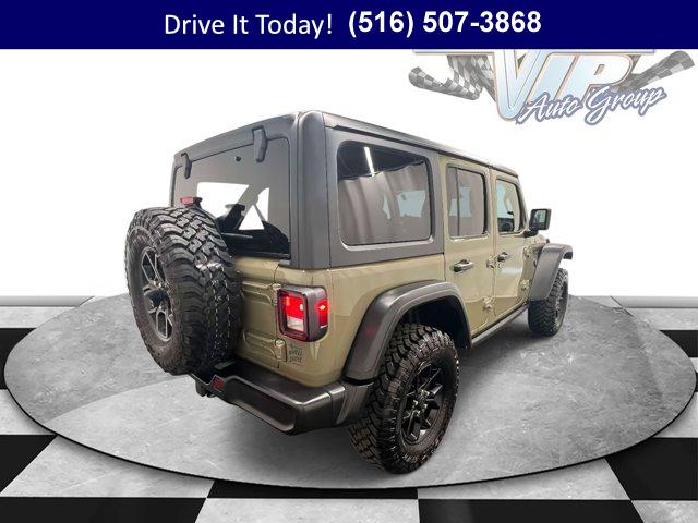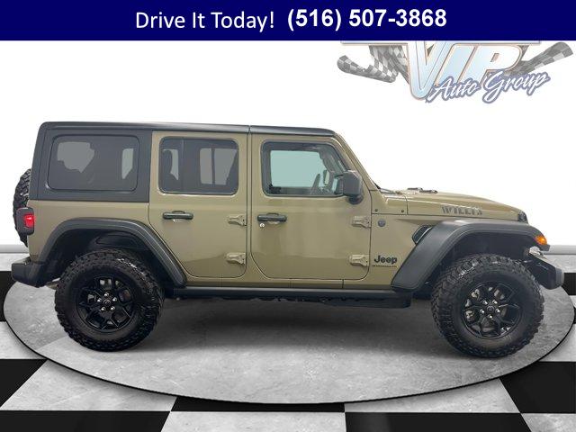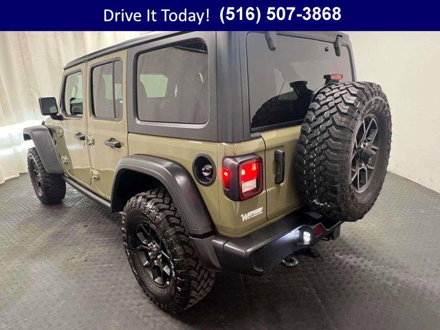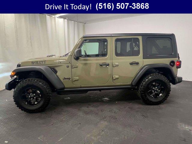 CONVENIENCE GROUP -inc: Emergency/Assistance Call 2-Door Passive Entry Front Door Locks Cluster 7.0 TFT Color Display Universal Garage Door Opener Heated Front Seats Air Conditioning w/Auto Temp Control Heated Steering Wheel Air Filtering, 2.0L I4 DOHC DI TURBO ENGINE W/ESS, 17 X 7.5 PAINTED BLACK WHEELS (STD), 8-SPEED AUTOMATIC 850RE TRANSMISSION -inc: Adaptive Cruise Control w/Stop Anti-Lock 4-Wheel Disc Brakes Dana M200 Rear Axle Selec-Speed Control, INCREASED TRAVEL EXPORT TUNED SUSPENSION (STD), 5 675 LBS GVWR (STD), BLACK 3-PIECE HARD TOP -inc: Freedom Panel Storage Bag Rear Window Defroster Rear Window Wiper/Washer No Soft Top, BLACK CLOTH LOW-BACK BUCKET SEATS, 4.10 REAR AXLE RATIO (STD), QUICK ORDER PACKAGE 22W WILLYS -inc: 2.0L I4 DOHC DI Turbo Engine w/ESS 8-Speed Automatic 850RE Transmission 7 & 4 Pin Wiring Harness Conventional Differential Front Axle 4-Wheel Drive Swing Gate Decal Black Grille w/Gloss Black Rings Injection Molded Black Rear Bumper Dana M210 Wide HD Tube Front Axle Daytime Running Lamps LED Accents Front LED Fog Lamps LED Premium Reflector Headlamps E-Locker Rear Axle Corning Gorilla Glass Security Alarm Class II Receiver Hitch Mold In Color Bumper w/Gloss Black Advanced Brake Assist Automatic Headlamps Off-Road Plus Mode Willys Hood Decal Full Speed Forward Collision Warning Plus Rock Protection Sill Rails Power Heated Mirrors Enhanced Adaptive Cruise Control Auxiliary Switches Dana M220 Wide Rear Axle Molded in Color Rubicon Highline Flare Premium Wrapped Steering Wheel Sun Visors w/Illuminated Vanity Mirrors, LT285/70R17C BSW MUD TERRAIN TIRES (STD), 41