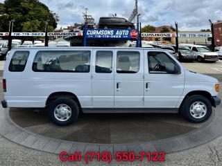 Comments XL; 15 PASSENGERVan; Dual Aircondition; Bluetooth. To view more pics of this vehicle as well as other vehicles in stock please visit our website www.curmsonsauto.com Over 100 vehicles in stock specializing in cargo & passenger vans, minivans, pickups, box trucks, utility trucks & sport utility trucks. Shelves/bins, partitions, roof racks, seating & decals can be removed or installed at customer`s request. Financing & extended warranties available. Major credit cards accepted. Call today! (718) 550-7122. Curmsons Auto Sales Inc. 73-07 Queens Blvd Woodside, NY 11377 see more pictures of this vehicle or call us at (718) 550-7122 today to schedule your test drive. Options Third Row Removable Seat, Second Row Removable Seat, Steel Wheels, Power Steering, Anti-Lock Brakes, Driver Airbag, Passenger Airbag, Air Conditioning, Running Boards, Rear Air, AM/FM, Tilt Wheel, 5.4L EFI V8 engine, AdvanceTrac w/RSC, Rear-wheel drive, 72 amp/hr (650 CCA) maintenance-free battery, 115 amp alternator, 4600# capacity twin I-beam front/6340# capacity semi-floating rear axles, Handling pkg-inc: front stabilizer bar- front/rear HD shock absorbers, Full size spare wheel, Pwr steering, Pwr 4-wheel disc brakes, 35 gallon fuel tank, Solar tinted glass, Interval windshield wipers, 60/40 hinged swing-out side cargo door, Front inboard armrest, Slim line color-keyed engine cover console-inc: dual bin stowage- (4) cup holders, Black plastic stepwell pads, Tilt steering wheel, SecuriLock anti-theft ignition, Rear 12-volt pwr point, Black cowl side trim panels, Day/night rearview mirror, Dual A-pillar grab handles, Rear cargo light, Courtesy light switches for all doors, Driver & front passenger 2nd generation airbags, Front height adjustable 3-point safety belts, Rear outboard 3-point shoulder/lap safety belts, Electric horn