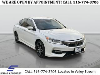 Comments Recent Arrival! 2016 Honda Accord Sport White FWD 2.4L I4 DOHC i-VTEC 16V * NYS INSPECTION INCLUDED *, * FULL INTERIOR / EXTERIOR DETAIL *, * BLUETOOTH *, * LIMITED NYS LEMON LAW WARRANTY INCLUDED *, *FRESH OIL CHANGE *, * 150 MULTI POINT INSPECTION *, Cloth. BEGIN THE SIMPLE PROCESS. PERSONALIZE THE PAYMENTS THAT FIT YOUR BUDGET, ADD YOUR TRADE-IN INFORMATION, APPLY FOR YOUR AUTO LOAN, SCHEDULE A PICKUP OR DELIVERY DATE. (HOME DELIVERY AVAILABLE*). EVERY VEHICLE HAS BEEN PRICED BELOW COST IN ORDER TO TURN INVENTORY QUICKLY AND PASS ON THE SAVINGS TO YOU! EACH VEHICLE COMES WITH A FREE LIMITED POWERTRAIN WARRANTY AND FREE CARFAX REPORT! WITH THESE SAVINGS THESE VEHICLES WONT LAST. CALL TO GET YOUR GREAT DEAL TODAY! (516) 774-3706. When it comes to offering an array of lending sources for used car buyers of varying credit levels, it's tough to top Stream Auto Outlet and our dedicated finance department. As an used car dealer for the people, we proudly specialize in sub-prime lending, so no matter your credit rating, we invite you to apply for auto loans today! No matter if you're looking to put your good credit to use or seeking bad credit financing for your next used car, you can rely on our auto loan professionals to tailor a financing package to your situation. Options 160-Watt AM/FM/CD Audio System, 4 Speakers, AM/FM radio, CD player, Radio data system, Air Conditioning, Automatic temperature control, Front dual zone A/C, Rear window defroster, Power driver seat, Power steering, Power windows, Remote keyless entry, Steering wheel mounted audio controls, Four wheel independent suspension, Speed-sensing steering, Traction control, 4-Wheel Disc Brakes, ABS brakes, Dual front impact airbags, Dual front side impact airbags, Front anti-roll bar, Low tire pressure warning, Occupant sensing airbag, Overhead airbag, Rear anti-roll bar, Brake assist, Electronic Stability Control, Exterior Parking Camera Rear, Delay-off headlights, Front fog lights, Fully automatic headlights, Panic alarm, Security system, Speed control, Bumpers: body-color, Power door mirrors, Spoiler, Cloth Seat Trim, Driver door bin, Driver vanity mirror, Front reading lights, Illuminated entry, Leather Shift Knob, Outside temperature display, Overhead console, Passenger vanity mirror, Rear seat center armrest, Tachometer, Telescoping steering wheel, Tilt steering wheel, Trip computer, Front Bucket Seats, Front Center Armrest, Split folding rear seat, Passenger door bin, 19" Alloy Wheels, Alloy wheels, Speed-Sensitive Wipers, Variably intermittent wipers, * NYS INSPECTION INCLUDED *, * FULL INTERIOR / EXTERIOR DETAIL *, * BLUETOOTH *, * LIMITED NYS LEMON LAW WARRANTY INCLUDED *, *FRESH OIL CHANGE *, * 150 MULTI POINT INSPECTION *
