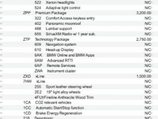 Options 4 Cylinder Engine, ABS, 4-Wheel Disc Brakes, 8-Speed A/T, A/C, A/T, Adjustable Steering Wheel, Security System, All Wheel Drive, Aluminum Wheels, AM/FM Stereo, Transmission w/Dual Shift Mode, Automatic Headlights, Auxiliary Audio Input, Brake Assist, Bucket Seats, Cargo Shade, CD Player, Child Safety Locks, Climate Control, Cruise Control, Daytime Running Lights, Driver Air Bag, Driver Illuminated Vanity Mirror, Driver Vanity Mirror, Multi-Zone A/C, Auto-Dimming Rearview Mirror, Stability Control, Fog Lamps, Floor Mats, Gasoline Fuel, HD Radio, Integrated Turn Signal Mirrors, Intermittent Wipers, Keyless Entry, Leather Steering Wheel, Mirror Memory, MP3 Player, Telematics, Pass-Through Rear Seat, Passenger Air Bag, Passenger Air Bag Sensor, Passenger Illuminated Visor Mirror, Passenger Vanity Mirror, Power Door Locks, Power Mirror(s), Power Folding Mirrors, Power Liftgate, Power Steering, Power Windows, Privacy Glass, Rain Sensing Wipers, Rear Bench Seat, Rear Defrost, Rear Head Air Bag, Rear Spoiler, Remote Trunk Release, Requires Subscription, Seat Memory, Front Side Air Bag, Front Head Air Bag, Steering Wheel Audio Controls, Tire Pressure Monitor, Tires - Front Performance, Tires - Rear Performance, Traction Control, Trip Computer, Turbocharged, Universal Garage Door Opener, Variable Speed Intermittent Wipers, Engine Immobilizer, Bluetooth Connection, Woodgrain Interior Trim, Black Bodyside Moldings and Black Wheel Well Trim, Body-Colored Door Handles, Body-Colored Front Bumper w/Black Rub Strip/Fascia Accent, Body-Colored Power Side Mirrors w/Driver Auto Dimming, Power Folding and Turn Signal Indicator, Body-Colored Rear Bumper w/Black Rub Strip/Fascia Accent, Chrome Side Windows Trim, Clearcoat Paint, Deep Tinted Glass, Fixed Rear Window w/Fixed Interval Wiper and Defroster, Front And Rear Fog Lamps, Front License Plate Bracket, Fully Automatic Projector Beam Halogen Daytime Running Headlamps w/Delay-Off, Fully Galvanized Steel Panels, Lip Spoiler, Metal-Look Grille w/Chrome Surround, Perimeter/Approach Lights, Power Liftgate Rear Cargo Access, Roof Rack Rails Only, Speed Sensitive Rain Detecting Variable Intermittent Wipers w/Heated Jets, Tailgate/Rear Door Lock Included w/Power Door Locks, Tires: P245/50R18 AS Run-Flat, Wheels: 18" x 8.0" V Spoke (Style 307) -inc: Light alloy, 2 Seatback Storage Pockets, 3 12V DC Power Outlets, 40-20-40 Folding Bench Front Facing Fold Forward Seatback Rear Seat, Air Filtration, Analog Display, Anti-Whiplash Adjustable Front Head Restraints and Manual Adjustable Rear Head Restraints, Cargo Area Concealed Storage, Cargo Features -inc: Cargo Tray/Organizer, Cargo Space Lights, Carpet Floor Trim, Cruise Control w/Steering Wheel Controls, Day-Night Auto-Dimming Rearview Mirror, Delayed Accessory Power, Driver And Passenger Visor Vanity Mirrors w/Driver And Passenger Illumination, Driver Foot Rest, Driver Seat, Dual Zone Front Automatic Air Conditioning, Engine Immobilizer, Fade-To-Off Interior Lighting, FOB Controls -inc: Trunk/Hatch/Tailgate and Windows, Front And Rear Map Lights, Front Center Armrest and Rear Center Armrest, Front Cupholder, Full Carpet Floor Covering -inc: Carpet Front And Rear Floor Mats, Full Cloth Headliner, Full Floor Console w/Covered Storage and 3 12V DC Power Outlets, Garage Door Transmitter, Gauges -inc: Speedometer, Odometer, Engine Coolant Temp, Tachometer, Trip Odometer and Trip Computer, HVAC -inc: Underseat Ducts and Console Ducts, Illuminated Locking Glove Box, Instrument Panel Covered Bin, Driver / Passenger And Rear Door Bins, Interior Lock Disable, Interior Trim -inc: Genuine Wood/Piano Black Instrument Panel Insert, Genuine Wood/Chrome Door Panel Insert, Genuine Wood Console Insert and Chrome/Metal-Look Interior Accents, Leatherette Door Trim Insert, Leatherette Gear Shift Knob, Manual Tilt/Telescoping Steering Column, Memory Settings -inc: Driver Seat and Door Mirrors, Outside Temp Gauge, Passenger Seat, Perimeter Alarm, Power 1st Row Windows w/Front And Rear 1-Touch Down, w/Driver And Passenger 1-Touch Up, Power Door Locks w/Autolock Feature, Power Front Bucket Seats -inc: 8-way power adjustable front seats w/2-way manual headrests, Power Fuel Flap Locking Type, Power Rear Windows and Fixed 3rd Row Windows, Rear Cupholder, Remote Keyless Entry w/Integrated Key Transmitter, Illuminated Entry and Panic Button, Roll-Up Cargo Cover, SensaTec Leatherette Upholstery, Sport Leather Steering Wheel, Systems Monitor, Trip Computer, Trunk/Hatch Auto-Latch, Valet Function, 17.7 Gal. Fuel Tank, 3.39 Axle Ratio, 4-Wheel Disc Brakes w/4-Wheel ABS, Front And Rear Vented Discs, Brake Assist, Hill Descent Control, Hill Hold Control and Electric Parking Brake, 90-Amp/Hr Maintenance-Free Battery, 910lbs. Maximum Payload, Electric Power-Assist Speed-Sensing Steering, Engine Auto Stop-Start Feature, Engine: 2.0L TwinPower Turbo In-Line 4-Cylinder, Front And Rear Anti-Roll Bars, Full-Time All-Wheel Drive, Gas-Pressurized Shock Absorbers, GVWR: 5, 080 lbs, Multi-Link Rear Suspension w/Coil Springs, Permanent Locking Hubs, Regenerative 210 Amp Alternator, Single Stainless Steel Exhaust w/Chrome Tailpipe Finisher, Strut Front Suspension w/Coil Springs, Towing Equipment -inc: Trailer Sway Control, Transmission w/Driver Selectable Mode and STEPTRONIC Sequential Shift Control, Transmission: 8-Speed STEPTRONIC Automatic, ABS And Driveline Traction Control, Airbag Occupancy Sensor, BMW Assist eCall Emergency Sos, Curtain 1st And 2nd Row Airbags, DSC+ Electronic Stability Control (ESC) And Roll Stability Control (RSC), Dual Stage Driver And Passenger Front Airbags, Dual Stage Driver And Passenger Seat-Mounted Side Airbags, Outboard Front Lap And Shoulder Safety Belts -inc: Rear Center 3 Point and Pretensioners, Rear Child Safety Locks, Side Impact Beams, Tire Specific Low Tire Pressure Warning