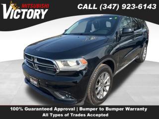 Comments Welcome to Victory Mitsubishi! We offer a combined inventory of 700 cars new and luxury used vehicles. All Used vehicles come with a quality assurance inspection, our New Vehicles have an unprecedented 10-year 100k mile warranty we also have vehicles car for any want or purpose. Come into test drive this car for any want or purpose. Come in to test drive this Dodge Durango SXT today! Priced below KBB Fair Purchase Price! *. 2018 Dodge Durango SXT DB Black Crystal Clearcoat 4D Sport Utility Save yourself Time and Money - Fill out a credit application online at victorymitsubishi.com and get pre-APPROVED! Financing available for all types of credit with low monthly payment that will fit you budget. Down Payment low as $599. Same day delivery. View our entire inventory by visiting our virtual showroom at victorymitsubishi.com - Only 2 blocks away from Exit 13 off I-95 or Minutes from exit 7 on the Hutchinson Parkway. While we make every effort to ensure the data listed here is correct, there may be instances where the pricing, options or vehicle features may be listed incorrectly. Dealer cannot be held liable for data that is listed incorrectly. to see more pictures of this vehicle or call us at (347) 923-6143 today to schedule your test drive. please refer to dealer’s website for exact pricing and for any incentives that we may apply! Our address is 4070 Boston Road, Bronx, NY 10475. * Options 3rd Row Seating Group, Quick Order Package 2BB, 6 Speakers, AM/FM radio, Radio: Uconnect 4 w/7" Display, SiriusXM Satellite Radio, Air Conditioning, Automatic temperature control, Front dual zone A/C, Rear air conditioning, Rear window defroster, Power steering, Power windows, Remote keyless entry, Steering wheel mounted audio controls, Four wheel independent suspension, Traction control, 4-Wheel Disc Brakes, ABS brakes, Anti-whiplash front head restraints, Dual front impact airbags, Dual front side impact airbags, Emergency communication system: Roadside Assistance/9-1-1 Call, Front anti-roll bar, Knee airbag, Low tire pressure warning, Occupant sensing airbag, Overhead airbag, Rear anti-roll bar, Brake assist, Electronic Stability Control, ParkView Rear Back-Up Camera, Delay-off headlights, Front fog lights, Fully automatic headlights, Panic alarm, Speed control, Bumpers: body-color, Heated door mirrors, Power door mirrors, Spoiler, 2nd Row Mini Console w/Cupholders, 3rd Row Floor Mat & Mini Console, Apple CarPlay/Android Auto, Auto-Dimming Rear-View Mirror, Auto-dimming Rear-View mirror, Compass, Driver door bin, Driver vanity mirror, Front reading lights, Illuminated entry, Leather steering wheel, Outside temperature display, Overhead console, Passenger vanity mirror, Rear reading lights, Rear seat center armrest, Tachometer, Telescoping steering wheel, Tilt steering wheel, Trip computer, 2nd Row 60/40 Fold & Tumble Seat, 3rd Row Seat, 6-Passenger Seating, Cloth Low-Back Bucket Seats, Front Bucket Seats, Split folding rear seat, Bright Side Roof Rails, Front Center Armrest w/Storage, Integrated Roof Rail Crossbars, Passenger door bin, Alloy wheels, Wheels: 18" x 8.0" Painted Aluminum, Rear window wiper, Speed-Sensitive Wipers, Variably intermittent wipers, 3.45 Rear Axle Ratio,