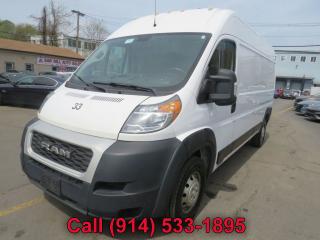 Comments This 2019 Ram ProMaster Cargo Van 3dr 2500 High Roof 159 WB features a 3.6L V6 CYLINDER 6cyl Gasoline engine. It is equipped with a 6 Speed Automatic transmission. The vehicle is Not Specified with a Not Specified interior. It is offered As-Is, extended warranty is available. - Air Conditioning, Power Steering, Power Windows, Leather Steering Wheel, Power Drivers Seat, Memory Seat Position, Clock, Tachometer, Telescoping Steering Wheel, Steering Wheel Radio Controls, Driver Airbag, Passenger Airbag, Side Airbags, Keyless Entry, Intermittent Wipers, AM/FM, Premium Sound System, Body Side Moldings, Cup Holders, Reverse Camera, Roll Stability Control, Side Curtain Airbags, Tire Pressure Monitor - Contact Michael Maratto at (914) 533-1895 for more information. - Options Air Conditioning, Power Steering, Power Windows, Leather Steering Wheel, Power Drivers Seat, Memory Seat Position, Clock, Tachometer, Telescoping Steering Wheel, Steering Wheel Radio Controls, Driver Airbag, Passenger Airbag, Side Airbags, Keyless Entry, Intermittent Wipers, AM/FM, Premium Sound System, Body Side Moldings, Cup Holders, Reverse Camera, Roll Stability Control, Side Curtain Airbags, Tire Pressure Monitor