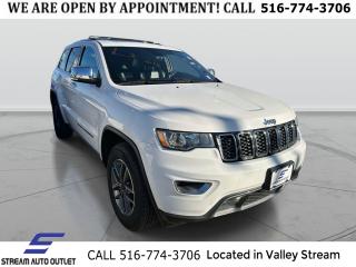Comments Recent Arrival! 2020 Jeep Grand Cherokee Limited Bright White Clearcoat 4WD 3.6L V6 24V VVT * NYS INSPECTION INCLUDED *, * FULL INTERIOR / EXTERIOR DETAIL *, * BLUETOOTH *, * LIMITED NYS LEMON LAW WARRANTY INCLUDED *, *FRESH OIL CHANGE *, * 150 MULTI POINT INSPECTION *, 4WD. BEGIN THE SIMPLE PROCESS. PERSONALIZE THE PAYMENTS THAT FIT YOUR BUDGET, ADD YOUR TRADE-IN INFORMATION, APPLY FOR YOUR AUTO LOAN, SCHEDULE A PICKUP OR DELIVERY DATE. (HOME DELIVERY AVAILABLE*). EVERY VEHICLE HAS BEEN PRICED BELOW COST IN ORDER TO TURN INVENTORY QUICKLY AND PASS ON THE SAVINGS TO YOU! EACH VEHICLE COMES WITH A FREE LIMITED POWERTRAIN WARRANTY AND FREE CARFAX REPORT! WITH THESE SAVINGS THESE VEHICLES WONT LAST. CALL TO GET YOUR GREAT DEAL TODAY! (516) 774-3706. When it comes to offering an array of lending sources for used car buyers of varying credit levels, it's tough to top Stream Auto Outlet and our dedicated finance department. As an used car dealer for the people, we proudly specialize in sub-prime lending, so no matter your credit rating, we invite you to apply for auto loans today! No matter if you're looking to put your good credit to use or seeking bad credit financing for your next used car, you can rely on our auto loan professionals to tailor a financing package to your situation. Options GPS Navigation, Navigation System, Quick Order Package 2BH, Quadra-Trac II 4WD System, 6 Speakers, AM/FM radio: SiriusXM, Audio memory, GPS Antenna Input, HD Radio, Integrated Center Stack Radio, Radio data system, Radio: Uconnect 4C Nav w/8.4" Display, SiriusXM Satellite Radio, Air Conditioning, Automatic temperature control, Front dual zone A/C, Rear window defroster, Memory seat, Power driver seat, Power steering, Power windows, Remote keyless entry, Steering wheel mounted audio controls, Four wheel independent suspension, Normal Duty Suspension, Speed-sensing steering, Traction control, 4-Wheel Disc Brakes, ABS brakes, Anti-whiplash front head restraints, Dual front impact airbags, Dual front side impact airbags, Emergency communication system: SiriusXM Guardian, Front anti-roll bar, Knee airbag, Low tire pressure warning, Occupant sensing airbag, Overhead airbag, Rear anti-roll bar, Power moonroof, Power Liftgate, Brake assist, Electronic Stability Control, ParkView Rear Back-Up Camera, Delay-off headlights, Front fog lights, Fully automatic headlights, Panic alarm, Security system, Speed control, Selec-Terrain System, Engine Oil Cooler, Auto-dimming door mirrors, Bumpers: body-color, Front License Plate Bracket, Heated door mirrors, Power door mirrors, Spoiler, Turn signal indicator mirrors, 1-Year SiriusXM Guardian Trial, 4G LTE Wi-Fi Hot Spot, 8.4" Touchscreen Display, Apple CarPlay, Apple CarPlay/Android Auto, Auto-dimming Rear-View mirror, Compass, Driver door bin, Driver vanity mirror, Front reading lights, Garage door transmitter, Google Android Auto, Heated steering wheel, Illuminated entry, Integrated Voice Command w/Bluetooth, Leather Shift Knob, Outside temperature display, Overhead console, Passenger vanity mirror, Rear reading lights, Rear seat center armrest, SiriusXM Traffic Plus, SiriusXM Travel Link, Tachometer, Telescoping steering wheel, Tilt steering wheel, Trip computer, USB Host Flip, Voltmeter, Front Bucket Seats, Heated front seats, Leather Trimmed Bucket Seats, Power passenger seat, Split folding rear seat, Front Center Armrest w/Storage, Passenger door bin, Alloy wheels, Wheels: 18" x 8.0" Tech Gray Aluminum (DISC), Wheels: 18" x 8.0" Tech Gray Diamond Cut, Rear window wiper, Speed-Sensitive Wipers, Variably intermittent wipers, 3.45 Rear Axle Ratio, * NYS INSPECTION INCLUDED *, * FULL INTERIOR / EXTERIOR DETAIL *, * BLUETOOTH *, * LIMITED NYS LEMON LAW WARRANTY INCLUDED *, *FRESH OIL CHANGE *, * 150 MULTI POINT INSPECTION *