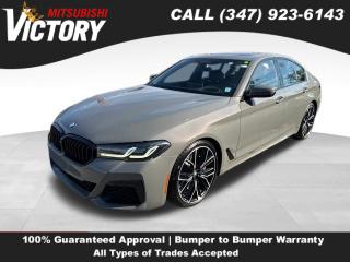 Comments Welcome to Victory Mitsubishi! We offer a combined inventory of 700 cars new and luxury used vehicles. All Used vehicles come with a quality assurance inspection, our New Vehicles have an unprecedented 10-year 100k mile warranty we also have vehicles car for any want or purpose. Come into test drive this car for any want or purpose. Come in to test drive this BMW 5 Series M550i xDrive today! Priced below KBB Fair Purchase Price! *. Clean CARFAX. 2021 BMW 5 Series M550i xDrive Bernina Gray Amber Effect Metallic 4D Sedan Save yourself Time and Money - Fill out a credit application online at victorymitsubishi.com and get pre-APPROVED! Financing available for all types of credit with low monthly payment that will fit you budget. Down Payment low as $599. Same day delivery. View our entire inventory by visiting our virtual showroom at victorymitsubishi.com - Only 2 blocks away from Exit 13 off I-95 or Minutes from exit 7 on the Hutchinson Parkway. While we make every effort to ensure the data listed here is correct, there may be instances where the pricing, options or vehicle features may be listed incorrectly. Dealer cannot be held liable for data that is listed incorrectly. to see more pictures of this vehicle or call us at (347) 923-6143 today to schedule your test drive. please refer to dealer’s website for exact pricing and for any incentives that we may apply! Our address is 4070 Boston Road, Bronx, NY 10475. * Options Navigation System, Connected Package Pro, Driving Assistance Plus Package, Executive Package, Parking Assistance Package, Shadowline Package, 16 Speakers, AM/FM radio: SiriusXM with 360L, Enhanced USB & Bluetooth, harman/kardon Surround Sound System, harman/kardon® Speakers, Radio data system, Radio: AM/FM Audio System, SiriusXM w/360L, Air Conditioning, Automatic temperature control, Front dual zone A/C, Rear window defroster, Head-Up Display, Memory seat, Power driver seat, Power steering, Power windows, Remote keyless entry, Steering wheel memory, Steering wheel mounted audio controls, Adaptive suspension, Four wheel independent suspension, Speed-sensing steering, Traction control, 4-Wheel Disc Brakes, ABS brakes, Dual front impact airbags, Dual front side impact airbags, Emergency communication system: BMW Assist eCall, Front anti-roll bar, Low tire pressure warning, Occupant sensing airbag, Overhead airbag, Power adjustable front head restraints, Rear anti-roll bar, Power moonroof, Brake assist, Electronic Stability Control, Exterior Parking Camera Rear, Rear-View Camera, Auto High-beam Headlights, Delay-off headlights, Fully automatic headlights, Panic alarm, Security system, Active Driving Assistant Pro, Extended Traffic Jam Assistant, Speed control, Auto-dimming door mirrors, Bumpers: body-color, Extended Shadowline Trim, Heated door mirrors, Power door mirrors, Spoiler, Turn signal indicator mirrors, Active Park Distance Control, Apple CarPlay & Android Auto Compatibility, Auto tilt-away steering wheel, Auto-dimming Rear-View mirror, BMW Assist eCall, BMW TeleServices, Ceramic Controls, ConnectedDrive Services, Drive Recorder, Driver door bin, Driver vanity mirror, Enhanced USB/Bluetooth Plus Smartphone Integration, Front reading lights, Garage door transmitter, Gesture Control, Gray Poplar Wood Trim, Heated Steering Wheel, Illuminated entry, Leather Shift Knob, Leather steering wheel, Live Cockpit Pro, M Shadowline Lights, Outside temperature display, Parking Assistant Plus, Passenger vanity mirror, Rear reading lights, Rear seat center armrest, Remote Services, Sport steering wheel, Surround View w/3D View, Tachometer, Telescoping steering wheel, Tilt steering wheel, Trip computer, WiFi Hotspot, Wireless Charging, Dakota Leather Upholstery, Front Bucket Seats, Front Center Armrest, Front Ventilated Seats, Heated Front Seats, Heated front seats, Multi-Contour Seats, Power Front Seats, Power passenger seat, Split folding rear seat, Passenger door bin, Alloy wheels, Wheels: 19" x 8" Fr & 19" x 9" Rr M Y-Spoke, Wheels: 20" x 8" Fr & 20" x 9" Rr M Y-Spoke, Power Rear Sunshade, Rain sensing wipers, Speed-Sensitive Wipers, Variably intermittent wipers,