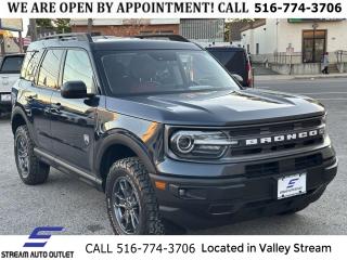 Comments Recent Arrival! 2021 Ford Bronco Sport Big Bend Blue Metallic 4WD 1.5L EcoBoost * NYS INSPECTION INCLUDED *, * FULL INTERIOR / EXTERIOR DETAIL *, * BLUETOOTH *, * LIMITED NYS LEMON LAW WARRANTY INCLUDED *, *FRESH OIL CHANGE *, * 150 MULTI POINT INSPECTION *, Big Bend Package (96B), Equipment Group 200A, Evasive Steering Assist, Ford Co-Pilot360 Assist+, Heated Front Bucket Seats, Intelligent Adaptive Cruise Control w/Stop & Go, Leather-Wrapped Steering Wheel, Reverse Sensing System, Voice-Activated Touchscreen Navigation System, Wireless Charging Pad. BEGIN THE SIMPLE PROCESS. PERSONALIZE THE PAYMENTS THAT FIT YOUR BUDGET, ADD YOUR TRADE-IN INFORMATION, APPLY FOR YOUR AUTO LOAN, SCHEDULE A PICKUP OR DELIVERY DATE. (HOME DELIVERY AVAILABLE*). EVERY VEHICLE HAS BEEN PRICED BELOW COST IN ORDER TO TURN INVENTORY QUICKLY AND PASS ON THE SAVINGS TO YOU! EACH VEHICLE COMES WITH A FREE LIMITED POWERTRAIN WARRANTY AND FREE CARFAX REPORT! WITH THESE SAVINGS THESE VEHICLES WONT LAST. CALL TO GET YOUR GREAT DEAL TODAY! (516) 774-3706. When it comes to offering an array of lending sources for used car buyers of varying credit levels, it's tough to top Stream Auto Outlet and our dedicated finance department. As an used car dealer for the people, we proudly specialize in sub-prime lending, so no matter your credit rating, we invite you to apply for auto loans today! No matter if you're looking to put your good credit to use or seeking bad credit financing for your next used car, you can rely on our auto loan professionals to tailor a financing package to your situation. Options Big Bend Package (96B), Equipment Group 200A, Ford Co-Pilot360 Assist+, 6 Speakers, AM/FM radio: SiriusXM, AM/FM Stereo, Radio data system, SiriusXM Radio, SYNC 3 Communications & Entertainment System, Air Conditioning, Automatic temperature control, Rear window defroster, Power steering, Power windows, Remote keyless entry, Steering wheel mounted audio controls, Four wheel independent suspension, Speed-sensing steering, Traction control, 4-Wheel Disc Brakes, ABS brakes, Dual front impact airbags, Dual front side impact airbags, Emergency communication system: SYNC 3 911 Assist, Front anti-roll bar, Knee airbag, Low tire pressure warning, Occupant sensing airbag, Overhead airbag, Rear anti-roll bar, Brake assist, Electronic Stability Control, Exterior Parking Camera Rear, Auto High-beam Headlights, Delay-off headlights, Front fog lights, Fully automatic headlights, Panic alarm, Security system, Intelligent Adaptive Cruise Control w/Stop & Go, Speed control, Front License Plate Bracket, Heated door mirrors, Power door mirrors, Roof rack: rails only, Compass, Driver door bin, Driver vanity mirror, Evasive Steering Assist, Front & Rear Floor Liners, Front reading lights, Illuminated entry, Leather-Wrapped Steering Wheel, Outside temperature display, Overhead console, Passenger vanity mirror, Rear reading lights, Rear seat center armrest, Reverse Sensing System, SYNC 3/Apple CarPlay/Android Auto, Tachometer, Telescoping steering wheel, Tilt steering wheel, Trip computer, Unique Cloth Front Bucket Seats, Voice-Activated Touchscreen Navigation System, Wireless Charging Pad, Front Bucket Seats, Front Center Armrest, Heated Front Bucket Seats, Split folding rear seat, Passenger door bin, Alloy wheels, Wheels: 17" Carbonized Gray-Painted Aluminum, Rear window wiper, Speed-Sensitive Wipers, Variably intermittent wipers, 3.80 Axle Ratio, * NYS INSPECTION INCLUDED *, * FULL INTERIOR / EXTERIOR DETAIL *, * BLUETOOTH *, * LIMITED NYS LEMON LAW WARRANTY INCLUDED *, *FRESH OIL CHANGE *, * 150 MULTI POINT INSPECTION *
