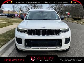 Comments All pricing and details are believed to be accurate, but we do not warrant or guarantee such accuracy. The prices shown above may vary from region to region, as will incentives, and are subject to change. All cars are sold cosmetically As-Is. Vehicle information is based on standard equipment and may vary from vehicle to vehicle. Call or email for complete vehicle specific information. Price Does not include tax, title, license, destination charges, finance charges, or any reconditioning fees. Our special Internet pricing cannot be extended without a printed copy of the online pricing. The in-store price may exceed our special online pricing. Sorry but we cannot extend special pricing without a printed copy of the on-line pricing. To take advantage of our special Internet discounts, please print this page and present it to your salesperson at the BEGINNING of the transaction. Special Internet pricing posted on this ad/coupon/promotion is only available to customers who reference such pricing & present the ad at time of sale otherwise our store standard list price applies. Please be advised this ad is a Special Internet only ad. Prices can be modified and adjusted weekly, daily and sometimes hourly due to inquiries, bidding and website traffic on any Vehicles. All displayed inventory is subject to prior sale and all prices expire at midnight on the date displayed. Every reasonable effort has been made to ensure the accuracy of the information contained on this site, however absolute accuracy cannot be guaranteed. Advertised special excludes state tax, title, license, registration, NY state inspection, NYS tire recycling fee, finance charges, and dealer fees if applicable. Please verify any information in question with the dealership sales manager. This is easily done by calling us at (516) 271-4110 or by visiting us at the dealership. **With approved credit. Bright White Clearcoat 2021 Jeep Grand Cherokee L Overland 4WD 8-Speed Automatic 3.6L V6 24V VVT Recent Arrival! Options GPS Navigation, Navigation System, Luxury Tech Group IV, Quick Order Package 22N, Trailer Tow Group (B), 10 Speakers, 19 Speakers High Performance Audio, 950 Watt Amplifier, AM/FM radio: SiriusXM w/360L, Audio memory, GPS Antenna Input, HD Radio, Integrated Center Stack Radio, Radio data system, Radio: Uconnect 5 Nav w/10.1" Display, Radio: Uconnect 5 Nav w/8.4" Display, SiriusXM Satellite Radio, SiriusXM w/360L, Air Conditioning, ATC w/4 Zone Temp Control, Automatic temperature control, Front dual zone A/C, Rear air conditioning, Rear window defroster, Memory seat, Power driver seat, Power steering, Power windows, Remote keyless entry, Steering wheel memory, Steering wheel mounted audio controls, Adaptive suspension, Auto-leveling suspension, Four wheel independent suspension, Normal Duty Suspension, Traction control, 4-Wheel Disc Brakes, ABS brakes, Anti-whiplash front head restraints, Dual front impact airbags, Dual front side impact airbags, Emergency communication system, Front anti-roll bar, Knee airbag, Low tire pressure warning, Occupant sensing airbag, Overhead airbag, Rear anti-roll bar, Power moonroof: CommandView, Power Liftgate, Brake assist, Electronic Stability Control, ParkView Rear Back-Up Camera, Auto High-beam Headlights, Delay-off headlights, Front fog lights, Fully automatic headlights, Panic alarm, Security system, Speed control, Aux Battery, Auto-dimming door mirrors, Bumpers: body-color, Front License Plate Bracket (DISC), Heated door mirrors, Power door mirrors, Roof rack: rails only, Spoiler, Turn signal indicator mirrors, USB Host Flip, 10.1" Touchscreen Display, 2nd Row Manual Window Shades, Air Susp/Activ Damping Delete Credit, Apple CarPlay, Apple CarPlay/Android Auto, Auto-dimming Rear-View mirror, Compass, Connected Travel & Traffic Services, Connectivity - US/Canada, Disassociated Touchscreen Display, Driver door bin, Driver vanity mirror, Front reading lights, Garage door transmitter, Google Android Auto, Heated steering wheel, Illuminated entry, Integrated Voice Command w/Bluetooth, Leather steering wheel, Nappa Leather Seats, Nappa Leather Seats (TL), Outside temperature display, Overhead console, Passenger vanity mirror, Rear reading lights, Rearview Autodim Digital Display Mirror, Tachometer, Telescoping steering wheel, Tilt steering wheel, Trailer Hitch Zoom, Trip computer, Voltmeter, Wireless Charging Pad, 3rd row seats: split-bench, Driver Power Seat Back Massage, Front Bucket Seats, Front Passenger Power Seat Back Massage, Heated front seats, Heated rear seats, Passenger Seat Memory, Power Adjust 12-Way Driver Seat, Power Adjust 12-Way Front Passenger Seat, Power Fold Seatbacks, Power passenger seat, Reclining 3rd row seat, Split folding rear seat, Ventilated front seats, Front Center Armrest w/Storage, Passenger door bin, Alloy wheels, Wheels: 20" x 8.5" Machined Face Aluminum, Rain sensing wipers, Rear window wiper, Speed-Sensitive Wipers, Variably intermittent wipers, 3.45 Rear Axle Ratio