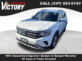 Comments Welcome to Victory Mitsubishi! We offer a combined inventory of 700 cars new and luxury used vehicles. All Used vehicles come with a quality assurance inspection, our New Vehicles have an unprecedented 10-year 100k mile warranty we also have vehicles car for any want or purpose. Come into test drive this car for any want or purpose. Come in to test drive this Volkswagen Atlas 3.6L V6 SE w/Technology today! Priced below KBB Fair Purchase Price! *. CARFAX One-Owner. 2021 Volkswagen Atlas 3.6L V6 SE w/Technology White 4D Sport Utility Save yourself Time and Money - Fill out a credit application online at victorymitsubishi.com and get pre-APPROVED! Financing available for all types of credit with low monthly payment that will fit you budget. Down Payment low as $599. Same day delivery. View our entire inventory by visiting our virtual showroom at victorymitsubishi.com - Only 2 blocks away from Exit 13 off I-95 or Minutes from exit 7 on the Hutchinson Parkway. While we make every effort to ensure the data listed here is correct, there may be instances where the pricing, options or vehicle features may be listed incorrectly. Dealer cannot be held liable for data that is listed incorrectly. to see more pictures of this vehicle or call us at (347) 923-6143 today to schedule your test drive. please refer to dealer’s website for exact pricing and for any incentives that we may apply! Our address is 4070 Boston Road, Bronx, NY 10475. * Options 6 Speakers, AM/FM radio: SiriusXM, Radio data system, Radio: Composition Media w/8" Touchscreen, Remote CD player, Air Conditioning, Automatic temperature control, Front dual zone A/C, Rear air conditioning, Rear window defroster, Power driver seat, Power steering, Power windows, Remote keyless entry, Steering wheel mounted audio controls, Four wheel independent suspension, Speed-sensing steering, Standard Suspension, Traction control, 4-Wheel Disc Brakes, ABS brakes, Active Blind Spot Monitor, Dual front impact airbags, Dual front side impact airbags, Emergency communication system: VW Car-Net services (capabilities require enrollment or subscription), Front anti-roll bar, Low tire pressure warning, Occupant sensing airbag, Overhead airbag, Rear anti-roll bar, Power Liftgate, Brake assist, Electronic Stability Control, Forward collision: FCW w/Autonomous Emergency Braking mitigation, Exterior Parking Camera Rear, Delay-off headlights, Front fog lights, Fully automatic headlights, Panic alarm, Security system, Speed control, Bumpers: body-color, Heated door mirrors, Power door mirrors, Roof rack: rails only, Spoiler, Turn signal indicator mirrors, Auto-dimming Rear-View mirror, Compass, Driver door bin, Driver vanity mirror, Front reading lights, Heated Comfort Front Bucket Seats, Illuminated entry, Leather Shift Knob, Outside temperature display, Overhead console, Passenger vanity mirror, Rear reading lights, Rear seat center armrest, Tachometer, Telescoping steering wheel, Tilt steering wheel, Trip computer, 3rd row seats: split-bench, Front Bucket Seats, Front Center Armrest, Heated front seats, Perforated V-Tex Leatherette Seating Surfaces, Split folding rear seat, Passenger door bin, Alloy wheels, Wheels: 20" 5-Spoke Silver Alloy, Rain sensing wipers, Rear window wiper, Variably intermittent wipers, 3.60 Axle Ratio,  Disclaimer
