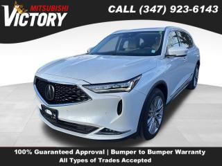 Comments Welcome to Victory Mitsubishi! We offer a combined inventory of 700 cars new and luxury used vehicles. All Used vehicles come with a quality assurance inspection, our New Vehicles have an unprecedented 10-year 100k mile warranty we also have vehicles car for any want or purpose. Come into test drive this car for any want or purpose. Come in to test drive this Acura MDX Advance today! Priced below KBB Fair Purchase Price! *. Clean CARFAX. 2022 Acura MDX Advance SH-AWD White 4D Sport Utility Save yourself Time and Money - Fill out a credit application online at victorymitsubishi.com and get pre-APPROVED! Financing available for all types of credit with low monthly payment that will fit you budget. Down Payment low as $599. Same day delivery. View our entire inventory by visiting our virtual showroom at victorymitsubishi.com - Only 2 blocks away from Exit 13 off I-95 or Minutes from exit 7 on the Hutchinson Parkway. While we make every effort to ensure the data listed here is correct, there may be instances where the pricing, options or vehicle features may be listed incorrectly. Dealer cannot be held liable for data that is listed incorrectly. to see more pictures of this vehicle or call us at (347) 923-6143 today to schedule your test drive. please refer to dealer’s website for exact pricing and for any incentives that we may apply! Our address is 4070 Boston Road, Bronx, NY 10475. * Options Navigation system: Acura Navigation System with 3D View, 16 Speakers, AM/FM radio: SiriusXM, Audio memory, Premium audio system: Acura/ELS Studio 3D, Radio data system, Radio: ELS Studio 3D Premium Audio System, Air Conditioning, Automatic temperature control, Front dual zone A/C, HVAC memory, Rear air conditioning, Rear window defroster, Heads-Up Display, Memory seat, Power driver seat, Power steering, Power windows, Remote keyless entry, Steering wheel memory, Steering wheel mounted audio controls, A/V remote: CabinControl, Adaptive suspension, Four wheel independent suspension, Speed-sensing steering, Traction control, 4-Wheel Disc Brakes, ABS brakes, Anti-whiplash front head restraints, Dual front impact airbags, Dual front side impact airbags, Emergency communication system: AcuraLink, Front anti-roll bar, Knee airbag, Low tire pressure warning, Occupant sensing airbag, Overhead airbag, Rear anti-roll bar, Power moonroof, Power Liftgate, Brake assist, Electronic Stability Control, Lane departure: Lane Keeping Assist System (LKAS) active, Auto High-beam Headlights, Delay-off headlights, Front fog lights, Fully automatic headlights, Panic alarm, Security system, Speed control, Bumpers: body-color, Heated door mirrors, Power door mirrors, Roof rack: rails only, Spoiler, Turn signal indicator mirrors, Apple CarPlay/Android Auto, Auto tilt-away steering wheel, Auto-dimming Rear-View mirror, Compass, Driver door bin, Driver vanity mirror, Front reading lights, Garage door transmitter: HomeLink, Heated & Ventilated Front Sport Seats, Heated steering wheel, Illuminated entry, Leather steering wheel, Outside temperature display, Overhead console, Passenger vanity mirror, Rear reading lights, Rear seat center armrest, Tachometer, Telescoping steering wheel, Tilt steering wheel, Trip computer, 3rd row seats: split-bench, Front Bucket Seats, Front Center Armrest, Heated front seats, Heated rear seats, Perforated Premium Milano Leather Trimmed Seats, Power passenger seat, Split folding rear seat, Ventilated front seats, Passenger door bin, Alloy wheels, Wheels: 20" x 9" Aluminum Alloy, Rain sensing wipers, Rear window wiper, Speed-Sensitive Wipers, Variably intermittent wipers, 4.17 Axle Ratio,