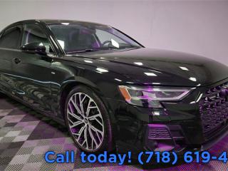 Comments CARFAX One-Owner. 2022 Audi A8 L 55 quattro Black w/Valetta Leather Seat Upholstery or Valcona Leather Seat Upholstery, 20" 10-Parallel-Spoke-Design Wheels, Alu-Optic Buttons, AM/FM radio: SiriusXM, Audi Adaptive Cruise Assist w/Lane Guidance, Audi Side Assist, Auto High-beam Headlights, Automatic temperature control, Bang & Olufsen Sound System w/3D Sound, Black Optic Package, Comfort Plus Package, Contour/Ambient LED Interior Lighting Package, Dual-Pane Acoustic Glass for Side Windows, Executive Package, Front dual zone A/C, Front fog lights, Front Seat Massage Function, Head-Up Display, Headlight cleaning, Heated Front Seat Armrests, Heated Rear Outboard Seats, Heated Steering Wheel, Intersection Assist, Navigation system: MMI Navigation plus, Power 2nd-Row Moonroof, Power moonroof, Rear air conditioning, Rear dual zone A/C, Steering wheel memory, Steering wheel mounted audio controls, Traffic Sign Recognition, Valcona Leather Seat Upholstery, Wheels: 21" Audi Sport 10-Y-Spoke-Evo-Design. 3.0L V6 Turbocharged DOHC 24V LEV3-ULEV70 335hp 8-Speed Automatic with Tiptronic quattro Odometer is 6620 miles below market average! 19/28 City/Highway MPG Options Navigation system: MMI Navigation plus, Black Optic Package, Comfort Plus Package, Contour/Ambient LED Interior Lighting Package, Executive Package, 17 Speakers, AM/FM radio: SiriusXM, Bang & Olufsen Sound System w/3D Sound, Radio data system, Radio: Audi MMI Navigation Plus, Air Conditioning, Automatic temperature control, Front dual zone A/C, HVAC memory, Rear air conditioning, Rear dual zone A/C, Rear window defroster, Head restraints memory, Head-Up Display, Memory seat, Power driver seat, Power steering, Power windows, Remote keyless entry, Seatbelt memory, Steering wheel memory, Steering wheel mounted audio controls, Adaptive suspension, Auto-leveling suspension, Four wheel independent suspension, Speed-sensing steering, Traction control, 4-Wheel Disc Brakes, ABS brakes, Dual front impact airbags, Dual front side impact airbags, Emergency communication system, Front anti-roll bar, Knee airbag, Low tire pressure warning, Occupant sensing airbag, Overhead airbag, Power adjustable front head restraints, Rear anti-roll bar, Rear side impact airbag, Power 2nd-Row Moonroof, Power moonroof, Audi Side Assist, Brake assist, Electronic Stability Control, Auto High-beam Headlights, Delay-off headlights, Front fog lights, Headlight cleaning, Rear fog lights, Dual-Pane Acoustic Glass for Side Windows, Panic alarm, Security system, Audi Adaptive Cruise Assist w/Lane Guidance, Speed control, Audi Black Rings & Badges, Auto-dimming door mirrors, Bumpers: body-color, Door auto-latch, Heated door mirrors, Power door mirrors, Turn signal indicator mirrors, 22-Way Heated Multi-Contour Comfort Front Seats, Alu-Optic Buttons, Audi Guard Protection Kit, Audi smartphone interface (Apple CarPlay/Android Auto), Auto tilt-away steering wheel, Auto-dimming Rear-View mirror, Compass, Driver door bin, Driver vanity mirror, Front reading lights, Garage door transmitter: HomeLink, Genuine wood door panel insert, Heated Steering Wheel, Illuminated entry, Intersection Assist, Leather Shift Knob, Leather steering wheel, Outside temperature display, Overhead console, Passenger vanity mirror, Rear reading lights, Rear seat center armrest, Tachometer, Telescoping steering wheel, Tilt steering wheel, Traffic Sign Recognition, Trip computer, Front Bucket Seats, Front Seat Massage Function, Heated Front Seat Armrests, Heated front seats, Heated Rear Outboard Seats, Power passenger seat, Valcona Leather Seat Upholstery, Valetta Leather Seat Upholstery, Ventilated front seats, Front Center Armrest w/Storage, Passenger door bin, 20" 10-Parallel-Spoke-Design Wheels, Alloy wheels, Wheels: 19" 15-Spoke Design, Wheels: 21" Audi Sport 10-Y-Spoke-Evo-Design, Rear Window Blind, Rain sensing wipers, Speed-Sensitive Wipers, Variably intermittent wipers