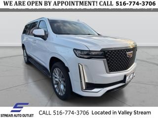 Comments 2022 Cadillac Escalade ESV Premium Crystal White Tricoat 4WD 6.2L V8 * NYS INSPECTION INCLUDED *, * FULL INTERIOR / EXTERIOR DETAIL *, * BACK UP CAMERA *, * NAVIGATION SYSTEM *, * BLUETOOTH *, * SUNROOF / MOONROOF*, * LEATHER SEATS *, * LIMITED NYS LEMON LAW WARRANTY INCLUDED *, *FRESH OIL CHANGE *, * 150 MULTI POINT INSPECTION *, 4WD, 1st 2nd & 3rd Row All-Weather Floor Mats (LPO), Adaptive Cruise Control, AKG Studio 19-Speaker Audio System, All-Weather Integrated Cargo Liner (LPO), Automatic Seat Belt Tightening, Automatic Stop/Start, Bright Sport Mesh Grille (LPO), Door Lock & Latch Shields, Enhanced Automatic Emergency Braking, Enhanced Automatic Parking Assist, Glass Breakage Sensor, Heated & Ventilated Driver & Front Passenger Seats, Interior Protection Package (LPO), Lane Change Alert w/Side Blind Zone Alert, Mechanical Limited-Slip Differential, Monochrome Cadillac Emblems (LPO), Navigation System, Power Panoramic Tilt-Sliding Sunroof, Preferred Equipment Group 1SB, Puddle Lamps w/Cadillac Crest (LPO), Radiant Package (LPO) (DISC), Rear Camera Mirror, Rear Camera Mirror Washer, Rear Cross Traffic Alert, Reconfigurable Full-Color Head-Up Display, Reverse Automatic Braking, Running Board Assist Steps, Start/Stop System Disable Button, Theft-Deterrent Alarm System, Vehicle Inclination Sensor, Vehicle Interior Movement Sensor, Wheels: 22" 12-Spoke Chrome Alloy (LPO), Wheels: 22" Interim (LPO). BEGIN THE SIMPLE PROCESS. PERSONALIZE THE PAYMENTS THAT FIT YOUR BUDGET, ADD YOUR TRADE-IN INFORMATION, APPLY FOR YOUR AUTO LOAN, SCHEDULE A PICKUP OR DELIVERY DATE. (HOME DELIVERY AVAILABLE*). EVERY VEHICLE HAS BEEN PRICED BELOW COST IN ORDER TO TURN INVENTORY QUICKLY AND PASS ON THE SAVINGS TO YOU! EACH VEHICLE COMES WITH A FREE LIMITED POWERTRAIN WARRANTY AND FREE CARFAX REPORT! WITH THESE SAVINGS THESE VEHICLES WONT LAST. CALL TO GET YOUR GREAT DEAL TODAY! (516) 774-3706. When it comes to offering an array of lending sources for used car buyers of varying credit levels, it's tough to top Stream Auto Outlet and our dedicated finance department. As an used car dealer for the people, we proudly specialize in sub-prime lending, so no matter your credit rating, we invite you to apply for auto loans today! No matter if you're looking to put your good credit to use or seeking bad credit financing for your next used car, you can rely on our auto loan professionals to tailor a financing package to your situation. Options Navigation System, Interior Protection Package (LPO), Preferred Equipment Group 1SB, Radiant Package (LPO) (DISC), 19 Speakers, AKG Studio 19-Speaker Audio System, AM/FM radio: SiriusXM with 360L, Audio memory, HD Radio, Radio data system, Radio: AM/FM/SiriusXM w/Navigation, SiriusXM w/360L, Air Conditioning, Automatic temperature control, Front dual zone A/C, Rear air conditioning, Rear window defroster, 8-Way Power Driver Seat Adjuster, 8-Way Power Front Passenger Seat Adjuster, Heads-Up Display, Memory seat, Power driver seat, Power steering, Power windows, Remote keyless entry, Steering wheel memory, Steering wheel mounted audio controls, Four wheel independent suspension, Mechanical Limited-Slip Differential, Premium Smooth Ride Suspension, Traction control, 4-Wheel Disc Brakes, ABS brakes, Door Lock & Latch Shields, Dual front impact airbags, Dual front side impact airbags, Emergency communication system: OnStar and Cadillac connected services capable, Front anti-roll bar, Low tire pressure warning, Occupant sensing airbag, Overhead airbag, Rear anti-roll bar, Power moonroof, Power Panoramic Tilt-Sliding Sunroof, Power Liftgate, Brake assist, Electronic Stability Control, Auto High-beam Headlights, Delay-off headlights, Fully automatic headlights, Automatic Seat Belt Tightening, Panic alarm, Security system, Theft-Deterrent Alarm System, Adaptive Cruise Control, Not Equipped w/Super Cruise, Speed control, Super Cruise, Automatic Stop/Start, Start/Stop System Disable Button, Auto-dimming door mirrors, Bright Sport Mesh Grille (LPO), Bumpers: body-color, Front License Plate Bracket, Heated door mirrors, Monochrome Cadillac Emblems (LPO), Power door mirrors, Puddle Lamps w/Cadillac Crest (LPO), Rear Bumper Protector, Rear Camera Mirror Washer, Roof rack: rails only, Running Board Assist Steps, Spoiler, Turn signal indicator mirrors, 16.9" Diagonal OLED Infotainment Screen, 1st 2nd & 3rd Row All-Weather Floor Mats (LPO), All-Weather Integrated Cargo Liner (LPO), Apple CarPlay/Android Auto, Auto tilt-away steering wheel, Compass, Driver door bin, Driver vanity mirror, Enhanced Automatic Emergency Braking, Enhanced Automatic Parking Assist, Front reading lights, Garage door transmitter, Glass Breakage Sensor, Heated steering wheel, Illuminated Cargo Sill Plate (LPO), Illuminated entry, Illuminated Front Door Sill Plates (LPO), Lane Change Alert w/Side Blind Zone Alert, Leather steering wheel, Not Equipped w/Steering Column Lock, Outside temperature display, Overhead console, Passenger vanity mirror, Rear Camera Mirror, Rear Cross Traffic Alert, Rear reading lights, Reconfigurable Full-Color Head-Up Display, Reverse Automatic Braking, Tachometer, Teen Driver, Telescoping steering wheel, Tilt steering wheel, Trip computer, Vehicle Inclination Sensor, Vehicle Interior Movement Sensor, Voltmeter, Wireless Apple CarPlay/Wireless Android Auto, 2-Presets Memory For Driver Seat Adjuster, 2nd Row 60/40 Split-Folding Power Release Bench, 3rd row seats: split-bench, Front Bucket Seats, Heated & Ventilated Driver & Front Passenger Seats, Heated Driver & Front Passenger Seats, Heated front seats, Heated rear seats, Leather Seating Surfaces w/Mini-Chevron Perf Inserts, Not Equipped w/4-Way Driver & Fr Pass Pwr Lumbar, Power passenger seat, Split folding rear seat, Ventilated front seats, Front Center Armrest w/Storage, Passenger door bin, Alloy wheels, Wheels: 22" 12-Spoke Chrome Alloy (LPO), Wheels: 22" 14-Spoke Alloy w/Polished Finish, Wheels: 22" Interim (LPO), Rain sensing wipers, Re
