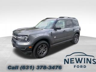 Comments 2022 Ford Bronco Sport Big Bend Carbonized Gray Metallic CARFAX One-Owner. Odometer : 34903 miles 2025 Dealer of the Year New York's Top Rated Ford Dealership Proudly serving the serving the Tri-State community for over 87 years, we are your trusted Ford experts in Bay Shore, New York. Our Ford Certified team is here to assist with all your vehicle needs, from service and parts to new and pre-owned purchases. Our employees are Ford Certified professionals who can assist with all of your vehicles service, parts and purchasing needs. Visit Us in Bay Shore, New York Call Us Today: (631) 378-3476. UT10890 Ford Bronco Sport 34903 miles 3FMCR9B64NRE03152 At Newins Bay Shore Ford, every used vehicle is carefully inspected and maintained to ensure top performance and reliability. Find your perfect match today and drive confidently with Newins Bay Shore Ford. No Games, just great deals. Come visit us today where our main street values are on display. Call Us Today at (631) 378-3476! Options Class II Trailer Tow Package w/Trailer Sway Control, Convenience Package, Equipment Group 200A, 6 Speakers, AM/FM radio: SiriusXM, AM/FM Stereo, Radio data system, SiriusXM Radio, SYNC 3 Communications & Entertainment System, Air Conditioning, Automatic temperature control, Rear window defroster, Power steering, Power windows, Remote keyless entry, Steering wheel mounted audio controls, Four wheel independent suspension, Speed-sensing steering, Traction control, 4-Wheel Disc Brakes, ABS brakes, Dual front impact airbags, Dual front side impact airbags, Emergency communication system: SYNC 3 911 Assist, Front anti-roll bar, Intelligent Access (Lock/Unlock), Knee airbag, Low tire pressure warning, Occupant sensing airbag, Overhead airbag, Rear anti-roll bar, Brake assist, Electronic Stability Control, Rear Parking Sensors, Auto High-beam Headlights, Delay-off headlights, Fully automatic headlights, Panic alarm, Security system, Speed control, Front License Plate Bracket, Heated door mirrors, LED Fog Lamps, Power door mirrors, Roof rack: rails only, 4G LTE Wi-Fi Hotspot Credit, Compass, Driver door bin, Driver vanity mirror, Front & Rear Floor Liners, Front Driver & Passenger Seatback Zipper Pockets, Front reading lights, Illuminated entry, Leather-Wrapped Steering Wheel, Outside temperature display, Overhead console, Passenger vanity mirror, Rear reading lights, Rear seat center armrest, Rubberized Second Row Seat Backs, SYNC 3/Apple CarPlay/Android Auto, Tachometer, Telescoping steering wheel, Tilt steering wheel, Trip computer, Unique Cloth Front Bucket Seats, Universal Garage Door Opener (UGDO), Wireless Charging Pad, Front Bucket Seats, Front Center Armrest, Heated Front Bucket Seats, Split folding rear seat, Passenger door bin, Alloy wheels, Wheels: 17" Carbonized Gray-Painted Aluminum, Rear window wiper, Speed-Sensitive Wipers, Variably intermittent wipers, 3.80 Axle Ratio