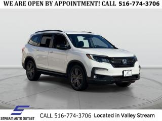 Comments Recent Arrival! 2022 Honda Pilot Sport Platinum White Pearl AWD 3.5L V6 24V SOHC i-VTEC * NYS INSPECTION INCLUDED *, * FULL INTERIOR / EXTERIOR DETAIL *, * BACK UP CAMERA *, * BLUETOOTH *, * LIMITED NYS LEMON LAW WARRANTY INCLUDED *, *FRESH OIL CHANGE *, * 150 MULTI POINT INSPECTION *, APPLE CAR PLAY/ANDROID AUTO, Pilot Sport, 4D Sport Utility, 3.5L V6 24V SOHC i-VTEC, 9-Speed Automatic, AWD, Platinum White Pearl, Black w/Cloth Seat Trim. BEGIN THE SIMPLE PROCESS. PERSONALIZE THE PAYMENTS THAT FIT YOUR BUDGET, ADD YOUR TRADE-IN INFORMATION, APPLY FOR YOUR AUTO LOAN, SCHEDULE A PICKUP OR DELIVERY DATE. (HOME DELIVERY AVAILABLE*). EVERY VEHICLE HAS BEEN PRICED BELOW COST IN ORDER TO TURN INVENTORY QUICKLY AND PASS ON THE SAVINGS TO YOU! EACH VEHICLE COMES WITH A FREE LIMITED POWERTRAIN WARRANTY AND FREE CARFAX REPORT! WITH THESE SAVINGS THESE VEHICLES WONT LAST. CALL TO GET YOUR GREAT DEAL TODAY! (516) 774-3706. When it comes to offering an array of lending sources for used car buyers of varying credit levels, it's tough to top Stream Auto Outlet and our dedicated finance department. As an used car dealer for the people, we proudly specialize in sub-prime lending, so no matter your credit rating, we invite you to apply for auto loans today! No matter if you're looking to put your good credit to use or seeking bad credit financing for your next used car, you can rely on our auto loan professionals to tailor a financing package to your situation. Options 7 Speakers, AM/FM radio: SiriusXM, Radio data system, Radio: 215-Watt Audio System, Air Conditioning, Automatic temperature control, Front dual zone A/C, Rear air conditioning, Rear window defroster, Power driver seat, Power steering, Power windows, Remote keyless entry, Steering wheel mounted audio controls, A/V remote: CabinControl, Four wheel independent suspension, Speed-sensing steering, Traction control, 4-Wheel Disc Brakes, ABS brakes, Dual front impact airbags, Dual front side impact airbags, Emergency communication system: HondaLink Assist, Front anti-roll bar, Low tire pressure warning, Occupant sensing airbag, Overhead airbag, Rear anti-roll bar, Blind Spot Information (BSI) System warning, Brake assist, Electronic Stability Control, Forward collision: Collision Mitigation Braking System (CMBS) + FCW mitigation, Lane departure: Lane Keeping Assist System (LKAS) active, Exterior Parking Camera Rear, Auto High-beam Headlights, Delay-off headlights, Front fog lights, Fully automatic headlights, Panic alarm, Security system, Speed control, Bumpers: body-color, Heated door mirrors, Power door mirrors, Roof rack: rails only, Spoiler, Turn signal indicator mirrors, Apple CarPlay/Android Auto, Cloth Seat Trim, Driver door bin, Driver vanity mirror, Front reading lights, Illuminated entry, Outside temperature display, Overhead console, Passenger vanity mirror, Rear reading lights, Rear seat center armrest, Tachometer, Telescoping steering wheel, Tilt steering wheel, Trip computer, 3rd row seats: split-bench, Front Bucket Seats, Front Center Armrest, Heated Front Bucket Seats, Heated front seats, Reclining 3rd row seat, Split folding rear seat, Passenger door bin, Alloy wheels, Wheels: 20" Pewter Gray Alloy, Rear window wiper, Speed-Sensitive Wipers, Variably intermittent wipers, 4.33 Axle Ratio, * NYS INSPECTION INCLUDED *, * FULL INTERIOR / EXTERIOR DETAIL *, * BACK UP CAMERA *, * BLUETOOTH *, * LIMITED NYS LEMON LAW WARRANTY INCLUDED *, *FRESH OIL CHANGE *, * 150 MULTI POINT INSPECTION *, APPLE CAR PLAY/ANDROID AUTO
