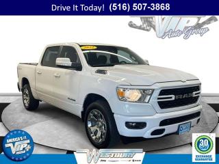 Comments HEMI 5.7L V8 power, confident 4WD traction, and a smooth 8-speed automatic make this 2022 Ram 1500 4D Crew Cab a standout for workdays and weekends. Finished in Bright White Clearcoat with a black cloth interior, it blends a clean, modern look with everyday comfort and capability. The ride is composed and quiet, the cabin is spacious, and helpful touches like a rear 60/40 folding seat and in-floor storage bins make daily use simple. Big Horn Level 2 comfort upgrades add heated front seats and a heated steering wheel for cold mornings, plus dual-zone automatic climate control so everyone rides at the right temperature. A power 8-way driver seat with lumbar support and power adjustable pedals dial in the perfect driving position, while the Class IV receiver hitch, heavy-duty engine cooling, and 3.21 rear axle ratio set you up for confident hauling and weekend projects.This truck is tech-smart and road ready. The Uconnect multimedia display with an 8.4 inch touchscreen brings Apple CarPlay, Google Android Auto, Bluetooth with integrated voice command, SiriusXM, a 4G LTE Wi Fi hotspot, and a 7.0 inch color driver cluster for key info at a glance. Charge and power up easily with multiple USB ports, two 115V outlets, and a 400W inverter. Convenience comes from steering wheel media controls, Remote Start, a Universal Garage Door Opener, a power sliding rear window, and a rear window defroster for clear visibility. Safety and confidence are backed by ParkSense Front and Rear Park Assist with Stop and ParkView Rear Back-Up Camera to help with tight spots, plus Electronic Stability Control, 4-wheel disc brakes, fully automatic headlights, fog lights, heated mirrors, and auto-dimming rear-view and driver mirrors. The 48V Belt Starter Generator contributes to smoother starts and added efficiency, and the look is finished with alloy wheels and the Sport Appearance Package’s body-color accents & more.Odometer: 54,606 miles. This well-equipped 1500 brings the strength you want with the comfort and tech you use every day.VIP+ ProgramDrive with lasting benefits. Our VIP+ Program includes Unlimited Oil and Filter changes for 1 year, then included with every factory maintenance thereafter. You also get Complimentary NYS Inspections, Complimentary Loaner Cars, and Complimentary 24/7 Rescue and Towing. These benefits are For Life and Transferable to the next owner, adding genuine long-term value and peace of mind.More About UsEvery vehicle is hand selected for quality and long-term reliability, then thoughtfully reconditioned before sale so you can purchase with confidence. Our certified vehicles meet strict standards that include brake life no less than 50 percent, along with thorough inspections that help ensure dependable performance. Count on our team for trust, preparation, and peace of mind. We are a proud member of the VIP Auto Group serving the community since 1957. We Will Satisfy You!If you are searching for a used truck in NY that handles commuting, jobsite demands, and weekend towing, this Ram 1500 fits the bill. 4WD traction boosts winter confidence, heated front seats and a heated steering wheel ease cold starts, and ParkSense plus a rear camera simplify city parking. With sturdy construction, thoughtful storage, and the Class IV hitch ready for trailers, it delivers safety, reliability, and long-term value that matter for daily driving and Long Island life.New York shoppers can call now, schedule a test drive, or learn more online at WestburyJeep.com, where you can view up-to-date inventory and current pricing on this truck and other options. If you are comparing an affordable used car or a capable pickup, our team is ready to help you find the right fit. Please note, the feature list and vehicle description are a general overview and may vary by vehicle. Verify exact equipment prior to purchase. Options BRIGHT WHITE CLEARCOAT, MONOTONE PAINT, QUICK ORDER PACKAGE 27Z BIG HORN -inc: Engine: 5.7L V8 HEMI MDS VVT eTorque Transmission: 8-Speed Automatic (8HP75) Big Horn Badge, PARKSENSE FRONT/REAR PARK ASSIST W/STOP, CLUSTER 7.0 TFT COLOR DISPLAY, WHEELS: 20 X 9 ALUMINUM CHROME CLAD (WRK), MANUFACTURER'S STATEMENT OF ORIGIN, GVWR: 7 100 LBS, CONNECTED SERVICES DELETE CREDIT, BLACK DELUXE CLOTH BUCKET SEATS -inc: Power 8-Way Driver Seat Bucket Seats Manual Adjust 4-Way Front Passenger Seat Full Length Floor Console Rear Center Armrest Delete LED Lamp - Floor Console Bin Power 2-Way Driver Lumbar Adjust, TRANSMISSION: 8-SPEED AUTOMATIC (8HP75), MOPAR FRONT & REAR RUBBER FLOOR MATS, TIRES: 275/55R20 OWL ALL SEASON, REMOTE START SYSTEM, RADIO: UCONNECT 5 W W/8.4 DISPLAY, 3.21 REAR AXLE RATIO (STD), FRONT LICENSE PLATE BRACKET, BIG HORN LEVEL 2 EQUIPMENT GROUP -inc: Google Android Auto SiriusXM Radio Service Bluetooth Handsfree Phone & Audio USB Host Flip Rear Window Defroster For Details Visit DriveUconnect.com Integrated Center Stack Radio ParkSense Front/Rear Park Assist w/Stop Rear View Auto Dim Mirror Power Adjustable Pedals Rear Power Sliding Window Rear Dome w/On/Off Switch Lamp Connectivity - US/Canada Glove Box Lamp 4G LTE Wi-Fi Hot Spot 115V Auxiliary Rear Power Outlet Media Hub w/2 Charge Only USBs Exterior Mirrors w/Heating Element Power 8-Way Driver Seat Auto Dim Exterior Driver Mirror Heated Front Seats Radio: Uconnect 5 W w/8.4 Display Heated Steering Wheel 8.4 Touchscreen Display Class IV Receiver Hitch Security Alarm Black Premium Power Mirrors Apple CarPlay Big Horn IP Badge Remote Start System SiriusXM Satellite Radio Exterior Mirrors w/Supplemental Signals Exterior Mirrors Courtesy Lamps Air Conditioning ATC w/Dual Zone Control 115V Auxiliary Power Out, 115V AUXILIARY POWER OUTLET -inc: 400W Inverter, ENGINE: 5.7L V8 HEMI MDS VVT ETORQUE -inc: Active Noise Control System Heavy Duty Engine Cooling Passive Tuned Mass Damper GPEC 5 Engine Controller GVWR: 7 100 lbs Dual Rear Exhaust w/Bright Tips HEMI Badge 23 Gallon Fuel Tank 18 Aluminum Spare Wheel, SPORT APPEARANCE PACKAG