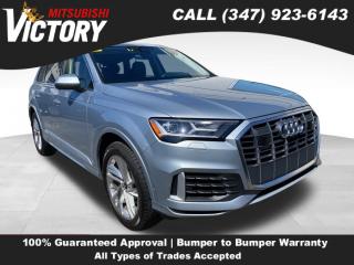 Comments Welcome to Victory Mitsubishi! We offer a combined inventory of 700 cars new and luxury used vehicles. All Used vehicles come with a quality assurance inspection, our New Vehicles have an unprecedented 10-year 100k mile warranty we also have vehicles car for any want or purpose. Come into test drive this car for any want or purpose. Come in to test drive this Audi Q7 55 Premium Plus today! Priced below KBB Fair Purchase Price! CARFAX One-Owner. 2023 Audi Q7 55 Premium Plus quattro Black 4D Sport Utility Save yourself Time and Money - Fill out a credit application online at victorymitsubishi.com and get pre-APPROVED! Financing available for all types of credit with low monthly payment that will fit you budget. Down Payment low as $599. Same day delivery. View our entire inventory by visiting our virtual showroom at victorymitsubishi.com - Only 2 blocks away from Exit 13 off I-95 or Minutes from exit 7 on the Hutchinson Parkway. While we make every effort to ensure the data listed here is correct, there may be instances where the pricing, options or vehicle features may be listed incorrectly. Dealer cannot be held liable for data that is listed incorrectly. to see more pictures of this vehicle or call us at (347) 923-6143 today to schedule your test drive. please refer to dealer’s website for exact pricing and for any incentives that we may apply! Our address is 4070 Boston Road, Bronx, NY 10475. Options Navigation system: Audi MMI Navigation plus with Touch Response, 10 Speakers, AM/FM radio: SiriusXM w/ 360L, Radio data system, Radio: Audi Sound System, Air Conditioning, Automatic temperature control, Front dual zone A/C, Rear air conditioning, Rear window defroster, Memory seat, Power driver seat, Power steering, Power windows, Remote keyless entry, Steering wheel memory, Steering wheel mounted audio controls, Four wheel independent suspension, Speed-sensing steering, Traction control, 4-Wheel Disc Brakes, ABS brakes, Dual front impact airbags, Dual front side impact airbags, Emergency communication system: Audi connect CARE, Front anti-roll bar, Low tire pressure warning, Occupant sensing airbag, Overhead airbag, Rear anti-roll bar, Rear side impact airbag, Power moonroof: Panoramic, Power Liftgate, Brake assist, Electronic Stability Control, Exterior Parking Camera Rear, Auto High-beam Headlights, Delay-off headlights, Front fog lights, Fully automatic headlights, Rear fog lights, Panic alarm, Security system, Speed control, Auto-dimming door mirrors, Bumpers: body-color, Heated door mirrors, Power door mirrors, Roof rack: rails only, Spoiler, Turn signal indicator mirrors, Auto-dimming Rear-View mirror, Compass, Driver door bin, Driver vanity mirror, Front reading lights, Garage door transmitter: HomeLink, Genuine wood door panel insert, Illuminated entry, Leather Shift Knob, Leather steering wheel, Outside temperature display, Overhead console, Passenger vanity mirror, Rear reading lights, Rear seat center armrest, Tachometer, Telescoping steering wheel, Tilt steering wheel, Trip computer, 3rd row seats: bench, Front Bucket Seats, Front Center Armrest, Heated Front Bucket Seats, Heated front seats, Leather Seating Surfaces, Power passenger seat, Reclining 3rd row seat, Split folding rear seat, Passenger door bin, Alloy wheels, Wheels: 19" 5-Arm-Star Design, Rain sensing wipers, Rear window wiper, Variably intermittent wipers, 3.204 Axle Ratio