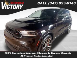 Comments Welcome to Victory Mitsubishi! We offer a combined inventory of 700 cars new and luxury used vehicles. All Used vehicles come with a quality assurance inspection, our New Vehicles have an unprecedented 10-year 100k mile warranty we also have vehicles car for any want or purpose. Come into test drive this car for any want or purpose. Come in to test drive this Dodge Durango R/T Plus today! Priced below KBB Fair Purchase Price! *. Clean CARFAX. 2023 Dodge Durango R/T Plus Red Oxide 4D Sport Utility Save yourself Time and Money - Fill out a credit application online at victorymitsubishi.com and get pre-APPROVED! Financing available for all types of credit with low monthly payment that will fit you budget. Down Payment low as $599. Same day delivery. View our entire inventory by visiting our virtual showroom at victorymitsubishi.com - Only 2 blocks away from Exit 13 off I-95 or Minutes from exit 7 on the Hutchinson Parkway. While we make every effort to ensure the data listed here is correct, there may be instances where the pricing, options or vehicle features may be listed incorrectly. Dealer cannot be held liable for data that is listed incorrectly. to see more pictures of this vehicle or call us at (347) 923-6143 today to schedule your test drive. please refer to dealer’s website for exact pricing and for any incentives that we may apply! Our address is 4070 Boston Road, Bronx, NY 10475. * Options Navigation system: TomTom, Quick Order Package 22T R/T Plus, Tow 'N Go Package, 9 Speakers, Active Noise Control System, AM/FM radio: SiriusXM w/360L, Radio data system, Radio: Uconnect 5 Nav w/10.1" Display, Air Conditioning, Automatic temperature control, Front dual zone A/C, Rear air conditioning, Rear window defroster, Exterior Mirrors w/Memory, Heated Second Row Seats, Power driver seat, Power steering, Power windows, Radio/Driver Seat/Mirrors Memory, Remote keyless entry, Steering wheel mounted audio controls, Adaptive Damping, Auto-leveling suspension, Four wheel independent suspension, Quadra-Trac Active-on-Demand 4WD, Rear Load Leveling Suspension, Speed-sensing steering, Traction control, 4-Wheel Disc Brakes, ABS brakes, Dual front impact airbags, Dual front side impact airbags, Emergency communication system: SiriusXM Guardian, Front anti-roll bar, Knee airbag, Low tire pressure warning, Occupant sensing airbag, Overhead airbag, Performance Tuned Steering, Rear anti-roll bar, Red Brembo Brakes w/SRT Performance Pad, Power Sunroof, Power Liftgate, Brake assist, Electronic Stability Control, ParkView Rear Back-Up Camera, Auto High-beam Headlights, Automatic Headlamp Leveling System, Delay-off headlights, Fully automatic headlights, High Performance Exhaust, Panic alarm, Security system, Adaptive Cruise Control w/Stop, Speed control, Electronic Limited Slip Differential Rear Axle, 145 mph Maximum Speed Calibration, 160 mph Primary Speedometer, Auto-Dimming Exterior Driver Mirror, Bumpers: body-color, Exterior Mirrors w/Heating Element, Exterior Mirrors w/Supplemental Signals, Gloss Black Exterior Mirrors, Heated door mirrors, High Perform Suspension, Power 6x9 Multi-Function Foldaway Mirrors, Power door mirrors, Premium LED Fog Lamps, Spoiler, 115V Auxiliary Power Outlet, Apple CarPlay/Android Auto, Auto-dimming Rear-View mirror, Cloth Bucket Seats w/Shift Insert, Compass, Driver door bin, Driver vanity mirror, Dual Remote USB Port - Charge Only, Front reading lights, Full Speed Forward Collision Warning Plus, Garage door transmitter, Heated steering wheel, Illuminated entry, Leather steering wheel, Leather Wrapped Door Panels, LED Auxiliary Low Beam & Turn Signal, Outside temperature display, Overhead console, Passenger vanity mirror, Power Tilt & Telescopic Steering Column, Rear reading lights, Rear seat center armrest, Red Accent Stitching, Sport steering wheel, Sport/Track/Tow/Snow Drive Modes, Tachometer, Telescoping steering wheel, Tilt steering wheel, Trip computer, Upper/Lower Body Color Rear Fascia, Voltmeter, 3rd row seats: split-bench, Front Bucket Seats, Heated front seats, Leather Trimmed Bucket Seats, Power 8-Way Driver Memory 8-Way Passenger Seats, Power Driver/Passenger 4-Way Lumbar Adjust, Split folding rear seat, Ventilated Front Seats, Black Roof Rails, Floor Console w/Leather Armrest, Front Center Armrest w/Storage, Integrated Roof Rail Crossbars, Passenger door bin, 7 & 4 Pin Wiring Harness, Class IV Receiver Hitch, Trailer Brake Control, Alloy wheels, Run Flat Tires, Wheels: 20" x 10" Hyper Black Aluminum, Wheels: 20" x 8.0" Fine Silver, Rain sensing wipers, Rear window wiper, Speed-Sensitive Wipers, Variably intermittent wipers, 3.09 Rear Axle Ratio,