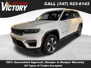 Comments Welcome to Victory Mitsubishi! We offer a combined inventory of 700 cars new and luxury used vehicles. All Used vehicles come with a quality assurance inspection, our New Vehicles have an unprecedented 10-year 100k mile warranty we also have vehicles car for any want or purpose. Come into test drive this car for any want or purpose. Come in to test drive this Jeep Grand Cherokee 4xe today! Priced below KBB Fair Purchase Price! *. 2023 Jeep Grand Cherokee 4xe Bright White Clearcoat 4D Sport Utility Save yourself Time and Money - Fill out a credit application online at victorymitsubishi.com and get pre-APPROVED! Financing available for all types of credit with low monthly payment that will fit you budget. Down Payment low as $599. Same day delivery. View our entire inventory by visiting our virtual showroom at victorymitsubishi.com - Only 2 blocks away from Exit 13 off I-95 or Minutes from exit 7 on the Hutchinson Parkway. While we make every effort to ensure the data listed here is correct, there may be instances where the pricing, options or vehicle features may be listed incorrectly. Dealer cannot be held liable for data that is listed incorrectly. to see more pictures of this vehicle or call us at (347) 923-6143 today to schedule your test drive. please refer to dealer’s website for exact pricing and for any incentives that we may apply! Our address is 4070 Boston Road, Bronx, NY 10475. * Options Quick Order Package 27F, 3.70 Rear Axle Ratio, Wheels: 18" x 8" Fully Painted Aluminum, Capri Leatherette Seats, Heavy Duty Suspension, Radio: Uconnect 5 Nav w/10.1" Display, Front License Plate Bracket, 4-Wheel Disc Brakes, AM/FM radio: SiriusXM with 360L, Auto High-beam Headlights, Front Center Armrest w/Storage, Compass, Speed-Sensitive Wipers, 10 Speakers, Variably intermittent wipers, Turn signal indicator mirrors, Trip computer, Traction control, Tilt steering wheel, Telescoping steering wheel, Steering wheel mounted audio controls, Split folding rear seat, Speed control, Security system, Remote keyless entry, Rear window wiper, Rear window defroster, Rear reading lights, Rear anti-roll bar, Radio data system, Power windows, Power steering, Power passenger seat, Power moonroof, Power driver seat, Power door mirrors, Passenger vanity mirror, Passenger door bin, Panic alarm, Overhead console, Overhead airbag, Outside temperature display, Occupant sensing airbag, Memory seat, Low tire pressure warning, Knee airbag, Illuminated entry, Heated steering wheel, Heated rear seats, Heated front seats, Heated door mirrors, Garage door transmitter, Fully automatic headlights, Front reading lights, Front fog lights, Front dual zone A/C, Front anti-roll bar, Four wheel independent suspension, Dual front side impact airbags, Dual front impact airbags, Driver vanity mirror, Driver door bin, Delay-off headlights, Bumpers: body-color, Brake assist, Automatic temperature control, Audio memory, Anti-whiplash front head restraints, Alloy wheels, Adjustable head restraints: driver and passenger w/tilt, ABS brakes, Voltmeter, Tachometer, Spoiler, Power Liftgate, ParkView Rear Back-Up Camera, Navigation System, Front Bucket Seats, Electronic Stability Control, Air Conditioning