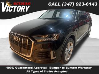 Comments Welcome to Victory Mitsubishi! We offer a combined inventory of 700 cars new and luxury used vehicles. All Used vehicles come with a quality assurance inspection, our New Vehicles have an unprecedented 10-year 100k mile warranty we also have vehicles car for any want or purpose. Come into test drive this car for any want or purpose. Come in to test drive this Audi Q7 55 Premium Plus today! *. 2024 Audi Q7 55 Premium Plus quattro Black 4D Sport Utility Save yourself Time and Money - Fill out a credit application online at victorymitsubishi.com and get pre-APPROVED! Financing available for all types of credit with low monthly payment that will fit you budget. Down Payment low as $599. Same day delivery. View our entire inventory by visiting our virtual showroom at victorymitsubishi.com - Only 2 blocks away from Exit 13 off I-95 or Minutes from exit 7 on the Hutchinson Parkway. While we make every effort to ensure the data listed here is correct, there may be instances where the pricing, options or vehicle features may be listed incorrectly. Dealer cannot be held liable for data that is listed incorrectly. to see more pictures of this vehicle or call us at (347) 923-6143 today to schedule your test drive. please refer to dealer’s website for exact pricing and for any incentives that we may apply! Our address is 4070 Boston Road, Bronx, NY 10475. * Options 3.204 Axle Ratio, Wheels: 19" 5-Arm-Star Design, Heated Front Bucket Seats, Leather Seating Surfaces, Radio: Audi Sound System, 4-Wheel Disc Brakes, AM/FM radio: SiriusXM w/ 360L, Navigation system: Audi MMI Navigation plus with Touch Response, Power moonroof: Panoramic, Emergency communication system: Audi connect CARE, Auto High-beam Headlights, Exterior Parking Camera Rear, Compass, 10 Speakers, Auto-dimming Rear-View mirror, Variably intermittent wipers, Turn signal indicator mirrors, Trip computer, Traction control, Tilt steering wheel, Telescoping steering wheel, Steering wheel mounted audio controls, Steering wheel memory, Split folding rear seat, Speed-sensing steering, Speed control, Security system, Remote keyless entry, Reclining 3rd row seat, Rear window wiper, Rear window defroster, Rear side impact airbag, Rear seat center armrest, Rear reading lights, Rear fog lights, Rear anti-roll bar, Rear air conditioning, Rain sensing wipers, Radio data system, Power windows, Power steering, Power passenger seat, Power driver seat, Power door mirrors, Passenger vanity mirror, Passenger door bin, Panic alarm, Overhead console, Overhead airbag, Outside temperature display, Occupant sensing airbag, Memory seat, Low tire pressure warning, Leather steering wheel, Illuminated entry, Heated front seats, Heated door mirrors, Genuine wood door panel insert, Garage door transmitter: HomeLink, Fully automatic headlights, Front reading lights, Front fog lights, Front dual zone A/C, Front anti-roll bar, Four wheel independent suspension, Dual front side impact airbags, Dual front impact airbags, Driver vanity mirror, Driver door bin, Delay-off headlights, Bumpers: body-color, Brake assist, Automatic temperature control, Auto-dimming door mirrors, Alloy wheels, Adjustable head restraints: driver and passenger w/tilt, ABS brakes, 3rd row seats: bench, Tachometer, Spoiler, Power Liftgate, Leather Shift Knob, Front Center Armrest, Front Bucket Seats, Electronic Stability Control, Air Conditioning