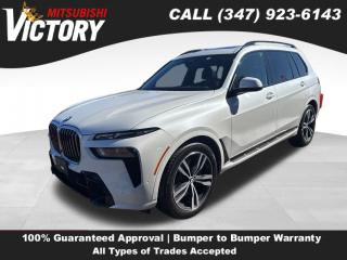 Comments Welcome to Victory Mitsubishi! We offer a combined inventory of 700 cars new and luxury used vehicles. All Used vehicles come with a quality assurance inspection, our New Vehicles have an unprecedented 10-year 100k mile warranty we also have vehicles car for any want or purpose. Come into test drive this car for any want or purpose. Come in to test drive this BMW X7 xDrive40i today! *. CARFAX One-Owner. 2024 BMW X7 xDrive40i Mineral White Metallic 4D Sport Utility Save yourself Time and Money - Fill out a credit application online at victorymitsubishi.com and get pre-APPROVED! Financing available for all types of credit with low monthly payment that will fit you budget. Down Payment low as $599. Same day delivery. View our entire inventory by visiting our virtual showroom at victorymitsubishi.com - Only 2 blocks away from Exit 13 off I-95 or Minutes from exit 7 on the Hutchinson Parkway. While we make every effort to ensure the data listed here is correct, there may be instances where the pricing, options or vehicle features may be listed incorrectly. Dealer cannot be held liable for data that is listed incorrectly. to see more pictures of this vehicle or call us at (347) 923-6143 today to schedule your test drive. please refer to dealer’s website for exact pricing and for any incentives that we may apply! Our address is 4070 Boston Road, Bronx, NY 10475. * Options 3.64 Axle Ratio, Wheels: 21" x 9.5" Y-Spoke Bi-Color, Wheels: 21" x 9.5" Double-Spoke Bi-Color Orbit Grey, Heated Multi-Contour Seats, Sensafin Upholstery, AM/FM Stereo, M Sport Package, M Sport Brakes w/Blue Calipers, Aluminum Running Boards, Trailer Hitch, Fineline Open Pore Wood Trim, Fineline Stripe Brown High Gloss Wood Trim, Fineline Black Wood Trim, Anthracite Alcantara Headliner, M Sport Package (337), Without Lines Designation Outside, Power Front Seats, SiriusXM w/360L & 1 Year Platinum Plan Subscription, Hi-Fi Sound System, BMW Assist eCall, BMW TeleServices, ConnectedDrive Services, Connected Package Pro, Wireless Charging Device, Personal eSIM 5G, Live Cockpit Pro, M Steering Wheel, Aerodynamic Kit, Shadowline Exterior Trim, Apple CarPlay & Android Auto Compatibility, 4-Wheel Disc Brakes, Navigation system: BMW Maps Navigation, Emergency communication system: BMW Assist eCall, Power moonroof: Panorama, AM/FM radio: SiriusXM with 360L, Auto High-beam Headlights, Exterior Parking Camera Rear, Apple CarPlay Compatibility, Compass, Speed-Sensitive Wipers, Heads-Up Display, 10 Speakers, Auto-dimming Rear-View mirror, Variably intermittent wipers, Turn signal indicator mirrors, Trip computer, Traction control, Tilt steering wheel, Telescoping steering wheel, Steering wheel mounted audio controls, Steering wheel memory, Sport steering wheel, Split folding rear seat, Speed-sensing steering, Speed control, Security system, Remote keyless entry, Reclining 3rd row seat, Rear window wiper, Rear window defroster, Rear seat center armrest, Rear reading lights, Rear dual zone A/C, Rear anti-roll bar, Rear air conditioning, Rain sensing wipers, Radio data system, Power windows, Power steering, Power passenger seat, Power driver seat, Power door mirrors, Power adjustable front head restraints, Passenger vanity mirror, Passenger door bin, Panic alarm, Overhead airbag, Outside temperature display, Occupant sensing airbag, Memory seat, Low tire pressure warning, Leather steering wheel, Knee airbag, Illuminated entry, Heated steering wheel, Heated front seats, Heated door mirrors, Head restraints memory, Genuine wood door panel insert, Genuine wood dashboard insert, Genuine wood console insert, Garage door transmitter, Fully automatic headlights, Front reading lights, Front dual zone A/C, Front anti-roll bar, Four wheel independent suspension, Dual front side impact airbags, Dual front impact airbags, Driver vanity mirror, Driver door bin, Delay-off headlights, Bumpers: body-color, Brake assist, Automatic temperature control, Auto-leveling suspension, Auto-dimming door mirrors, Auto tilt-away steering wheel, Alloy wheels, Adaptive suspension, ABS brakes, 3rd row seats: split-bench, Tachometer, Spoiler, Front Center Armrest, Front Bucket Seats, Electronic Stability Control, Air Conditioning