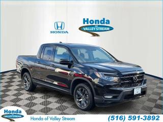 Comments Recent Arrival! CARFAX One-Owner. Clean CARFAX. Black 2025 Honda Ridgeline Sport AWD 9-Speed Automatic 3.5L V6 SOHC i-VTEC 24V Black Cloth.Honda of Valley Stream, NY has been serving drivers in Brooklyn, Queens, the Five Towns, and Long Island since 1982. Family-owned and operated, Honda of Valley Stream has always kept the same automotive philosophy in which our customers always come first. Options Remote Engine Start, All Wheel Drive, Tow Hitch, Power Steering, ABS, 4-Wheel Disc Brakes, Brake Assist, Brake Actuated Limited Slip Differential, Aluminum Wheels, Tires - Front All-Season, Tires - Rear All-Season, Temporary Spare Tire, Power Mirror(s), Rear Defrost, Privacy Glass, Intermittent Wipers, Variable Speed Intermittent Wipers, Power Door Locks, Daytime Running Lights, Automatic Headlights, LED Headlights, Fog Lamps, AM/FM Stereo, MP3 Capability, Bluetooth Connection, Auxiliary Audio Input, Smart Device Integration, MP3 Capability, Steering Wheel Audio Controls, Auxiliary Audio Input, Bucket Seats, Pass-Through Rear Seat, Rear Bench Seat, Adjustable Steering Wheel, Trip Computer, Power Windows, Telematics, Requires Subscription, Keyless Entry, Power Door Locks, Keyless Start, Keyless Entry, Power Door Locks, Cruise Control, Adaptive Cruise Control, Climate Control, Multi-Zone A/C, A/C, A/C, Rear A/C, Cloth Seats, Driver Vanity Mirror, Passenger Vanity Mirror, Floor Mats, Keyless Start, Smart Device Integration, Bluetooth Connection, Power Windows, Power Door Locks, Trip Computer, Security System, Immobilizer, Traction Control, Stability Control, Traction Control, Front Side Air Bag, Telematics, Requires Subscription, Blind Spot Monitor, Cross-Traffic Alert, Lane Departure Warning, Lane Keeping Assist, Lane Departure Warning, Front Collision Mitigation, Tire Pressure Monitor, Driver Air Bag, Passenger Air Bag, Front Head Air Bag, Rear Head Air Bag, Passenger Air Bag Sensor, Child Safety Locks, Back-Up Camera